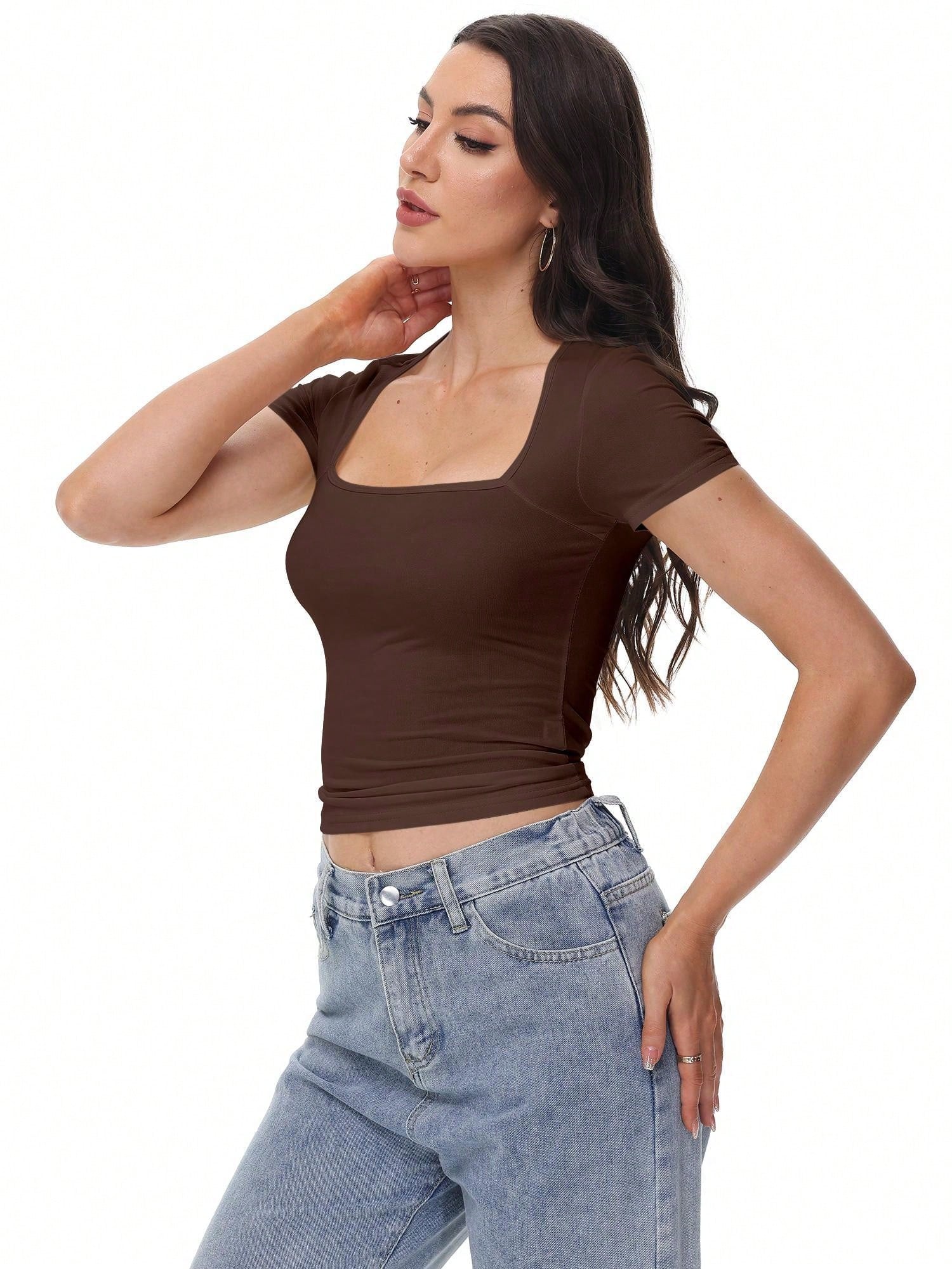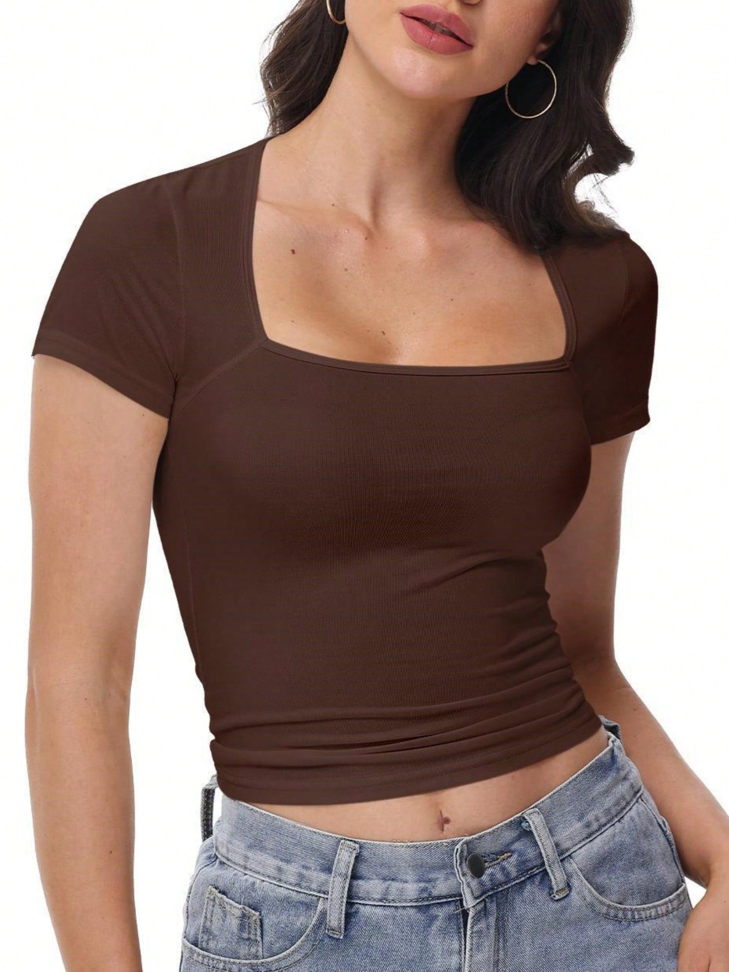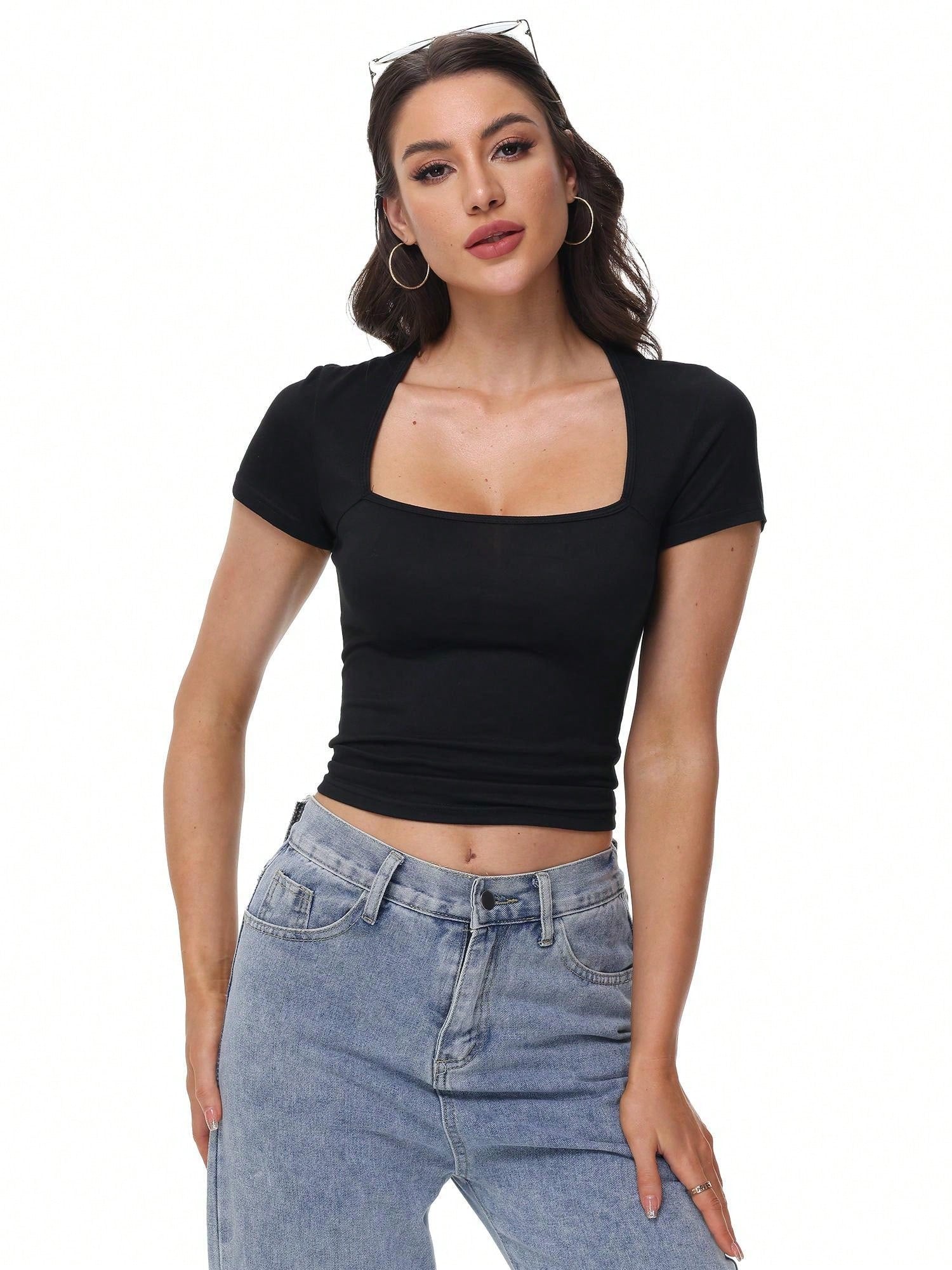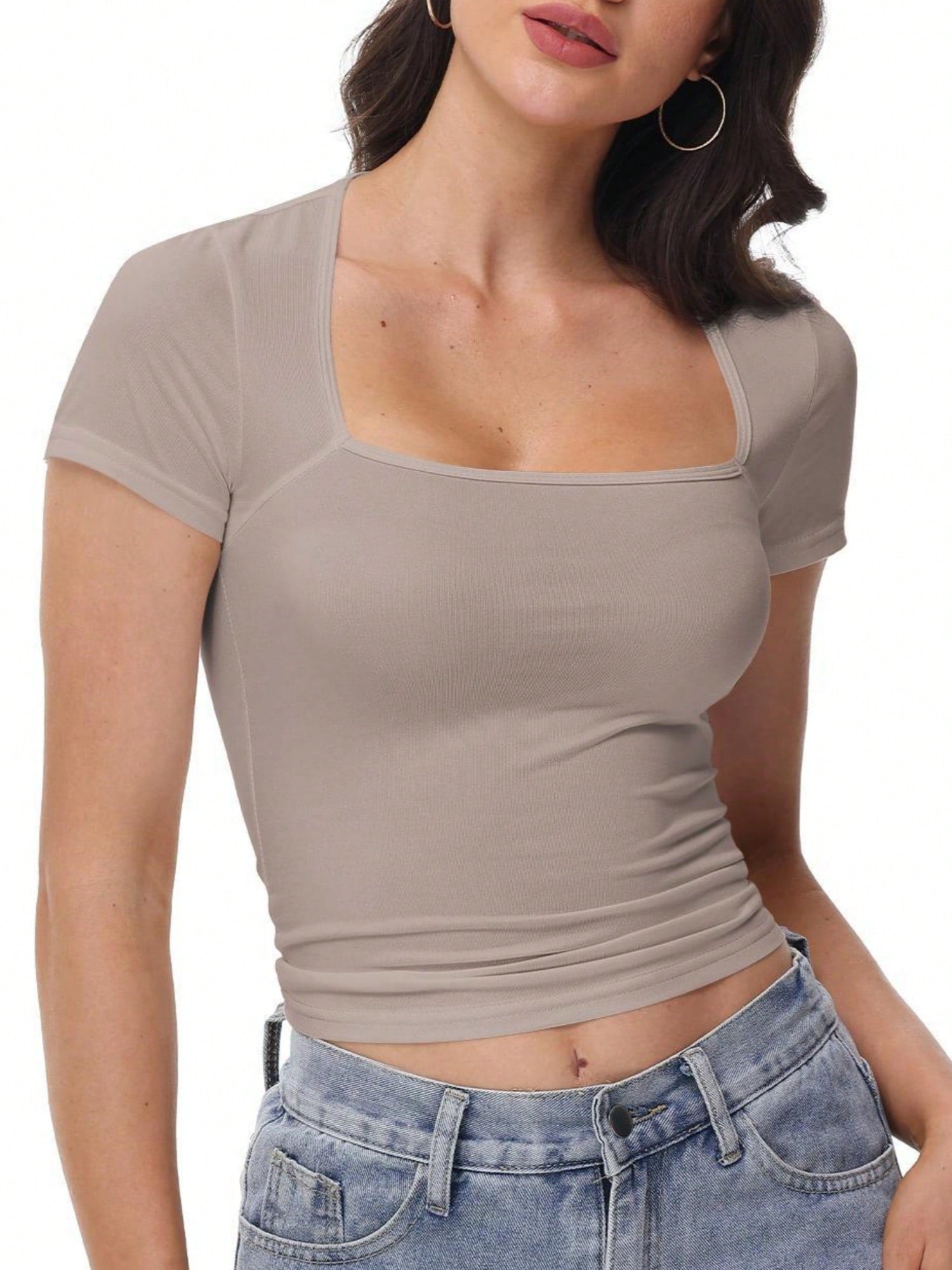 EVERYDAY BASIC:Ideal for day-to-night styling, this tee shirts top is framed with a a square neckline and curved shoulders for a bust flattering fit,It's designed in our signature buttery soft jersey fabric with sustainably sourced Polyamide fibres and detailed amplifying the second-skin fit.