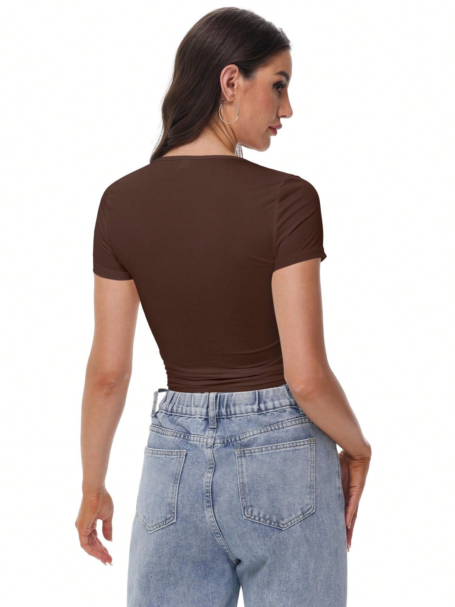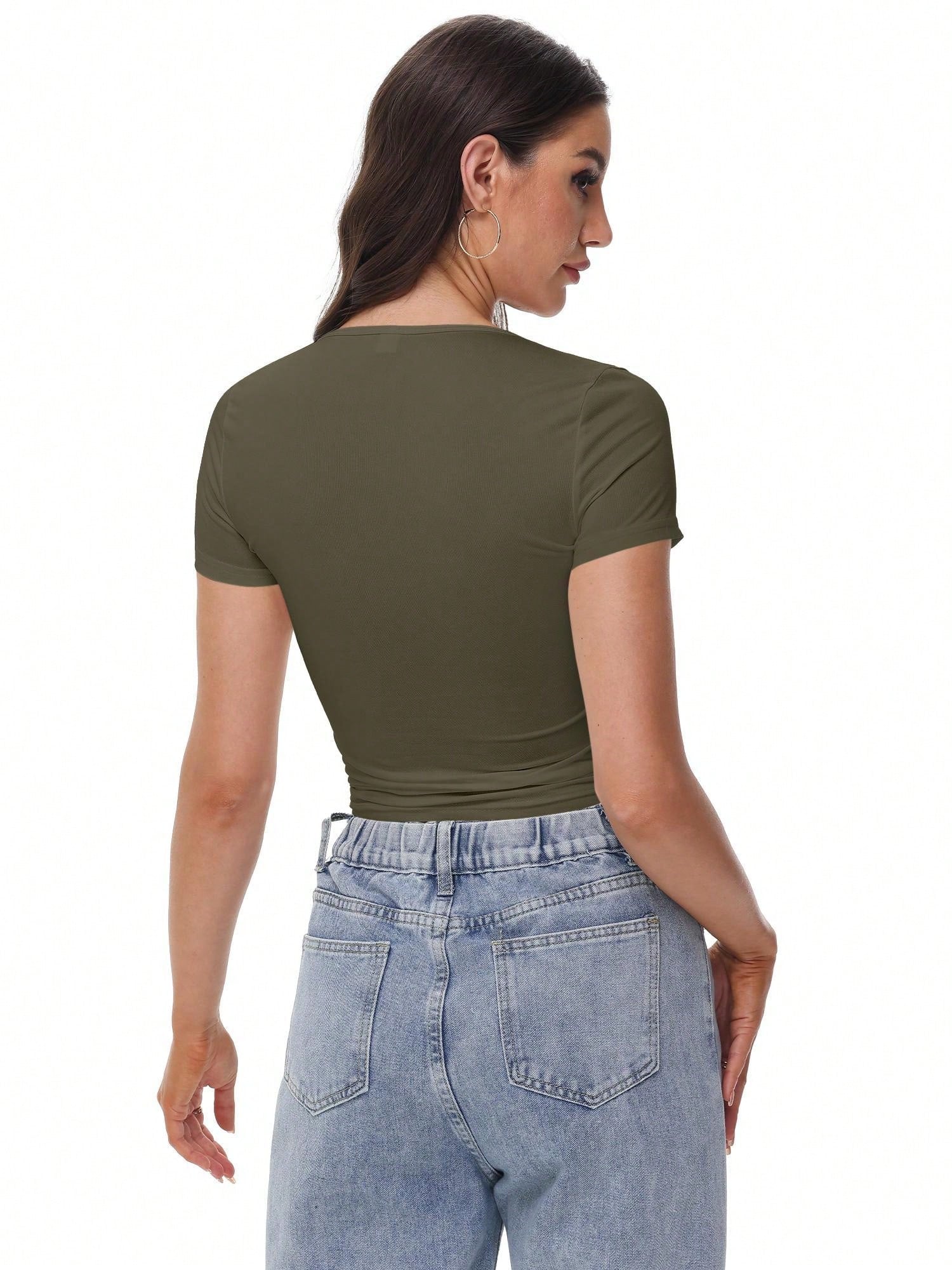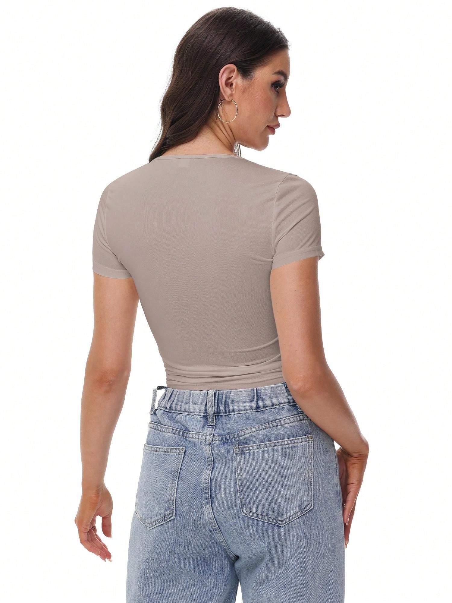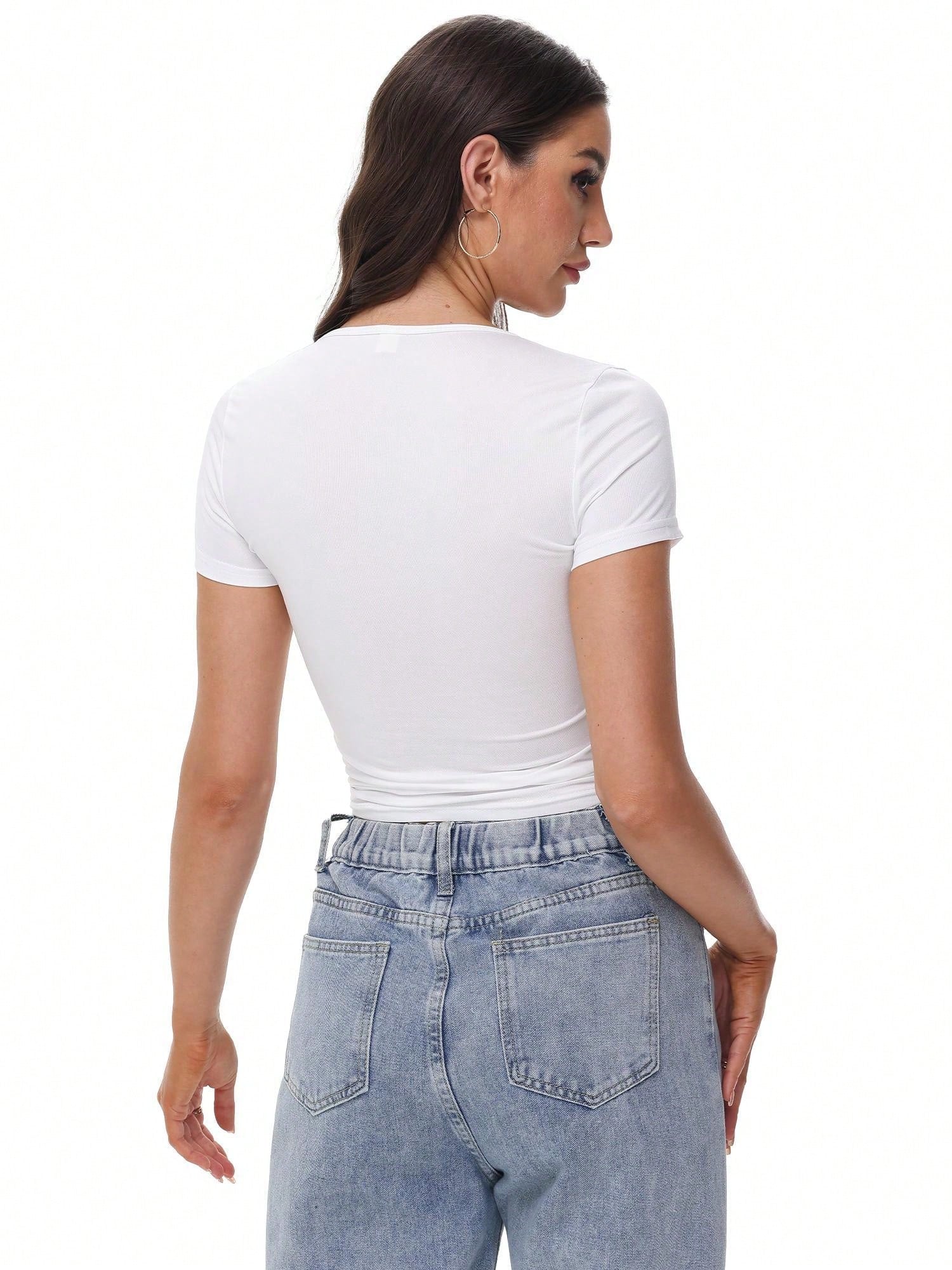 EVERYDAY BASIC:Ideal for day-to-night styling, this tee shirts top is framed with a a square neckline and curved shoulders for a bust flattering fit,It's designed in our signature buttery soft jersey fabric with sustainably sourced Polyamide fibres and detailed amplifying the second-skin fit.