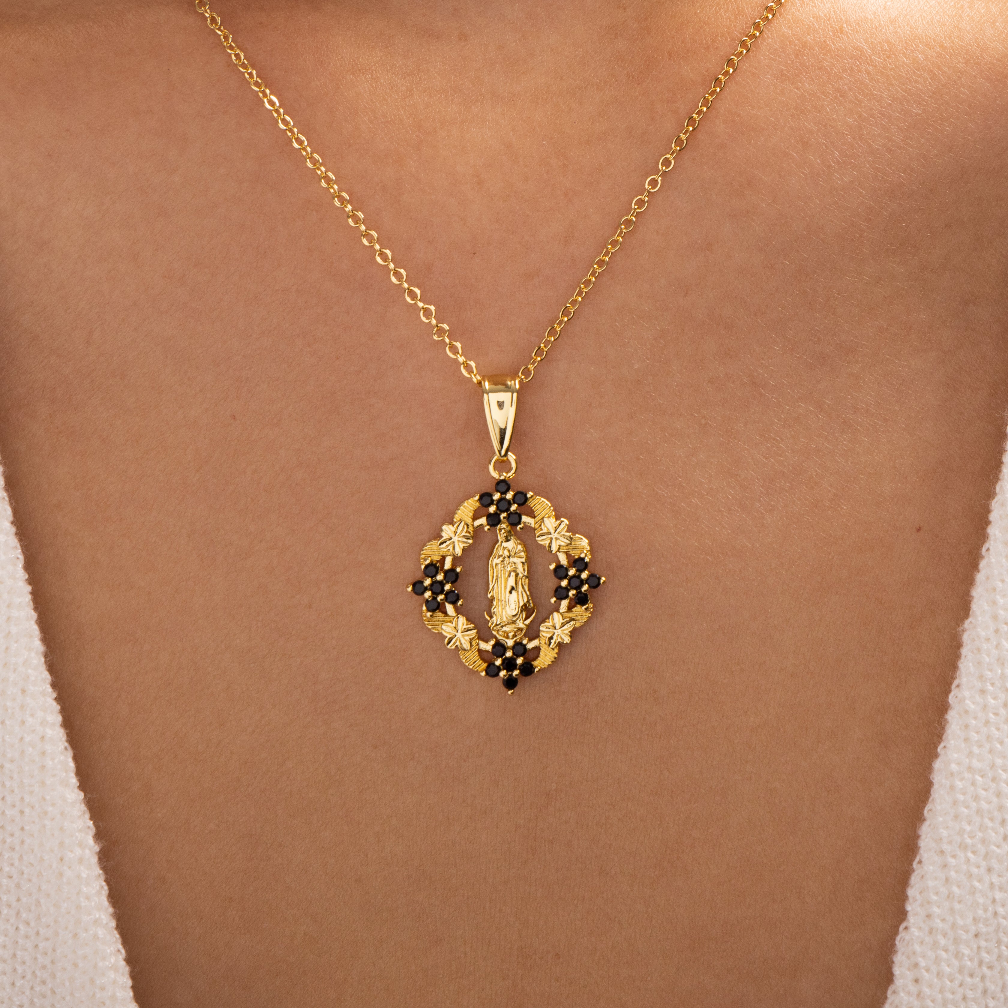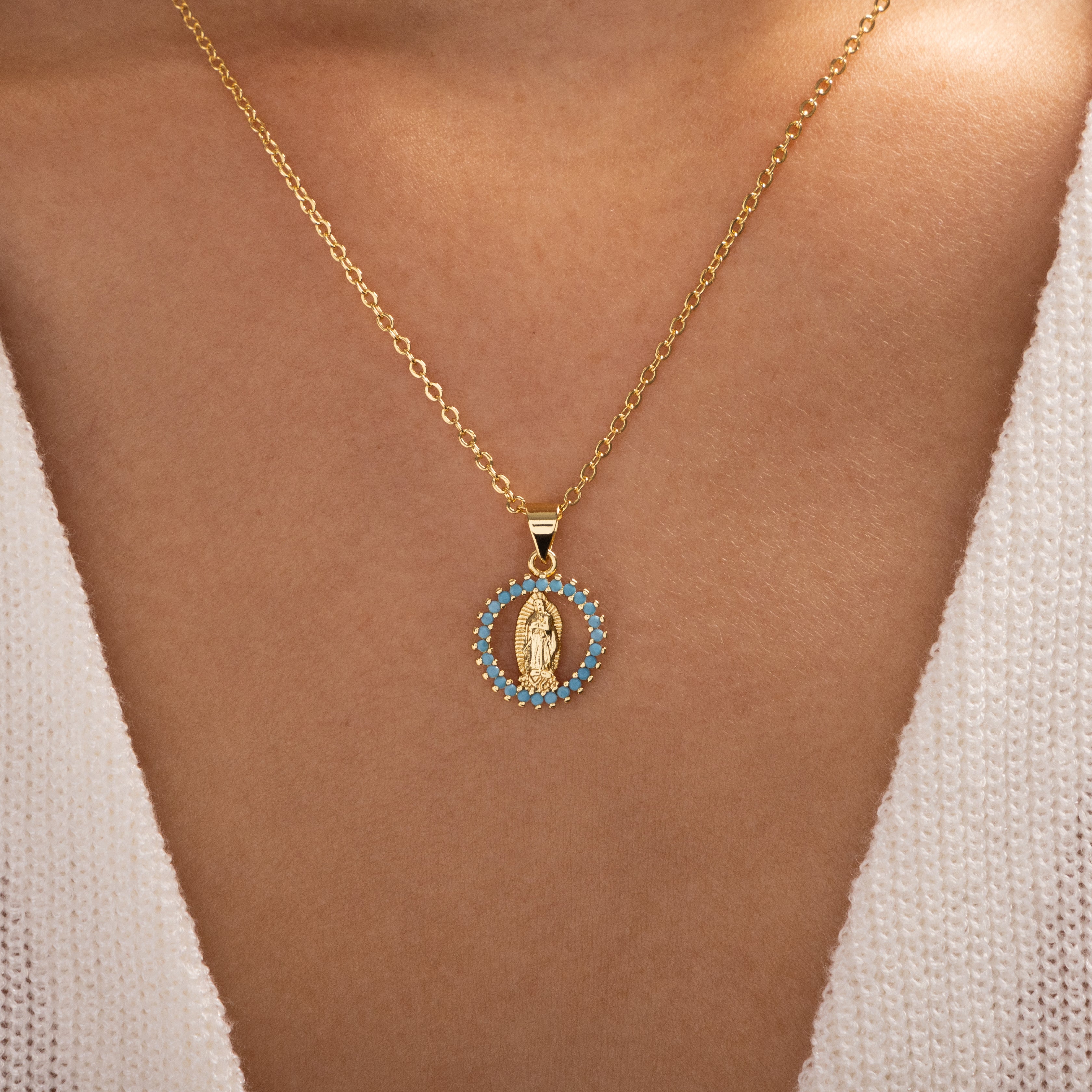 Mary & Flower Necklace (Blue)