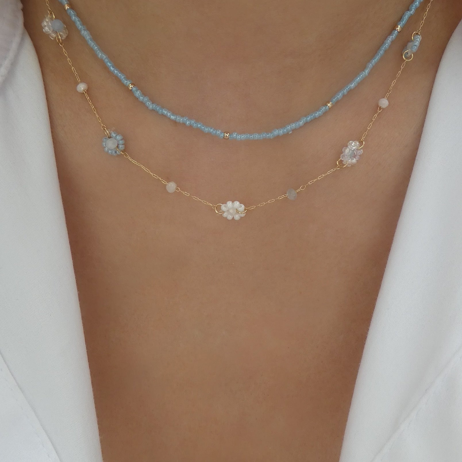 Blue Flower Bead Necklace