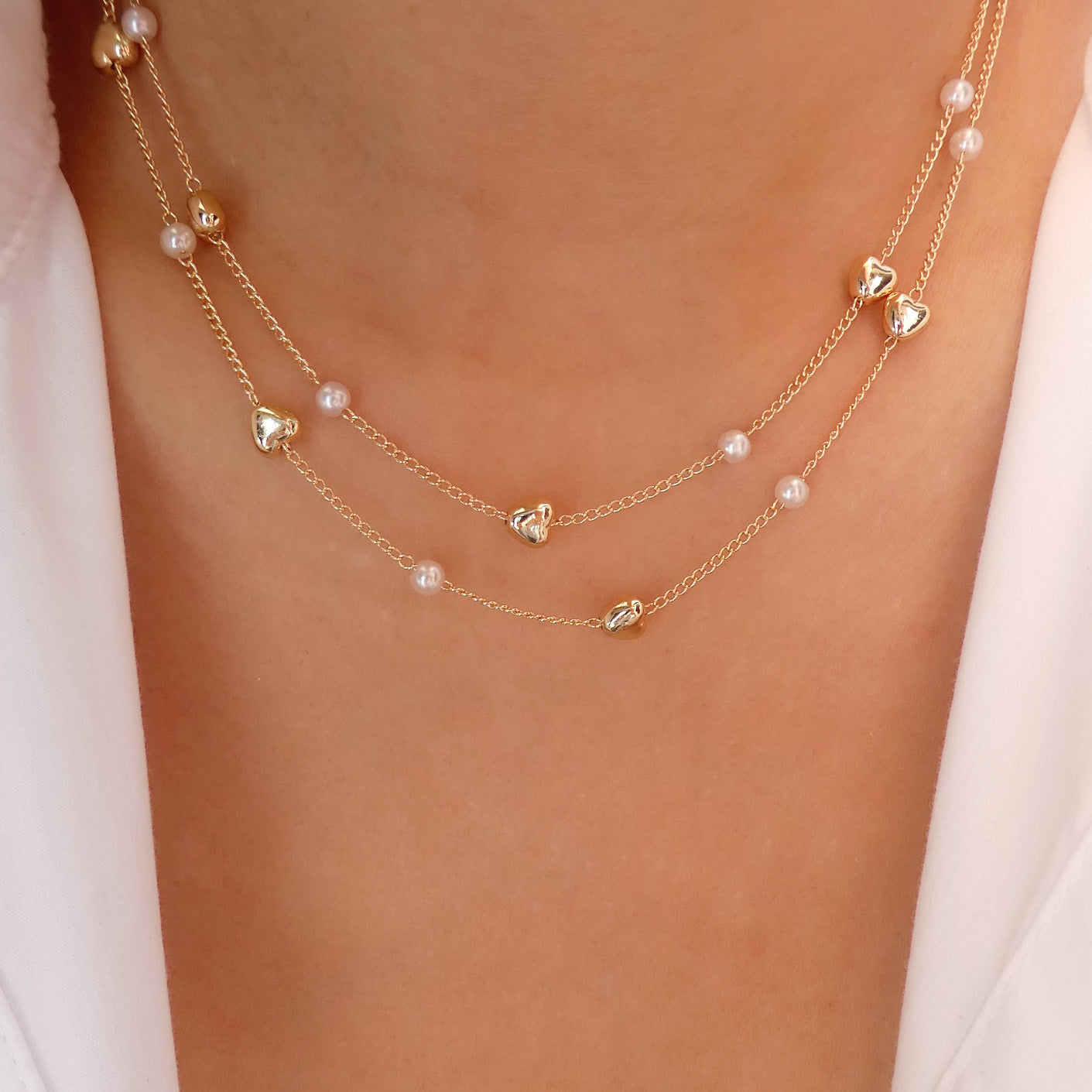 Nancy Heart & Pearl Necklace Set