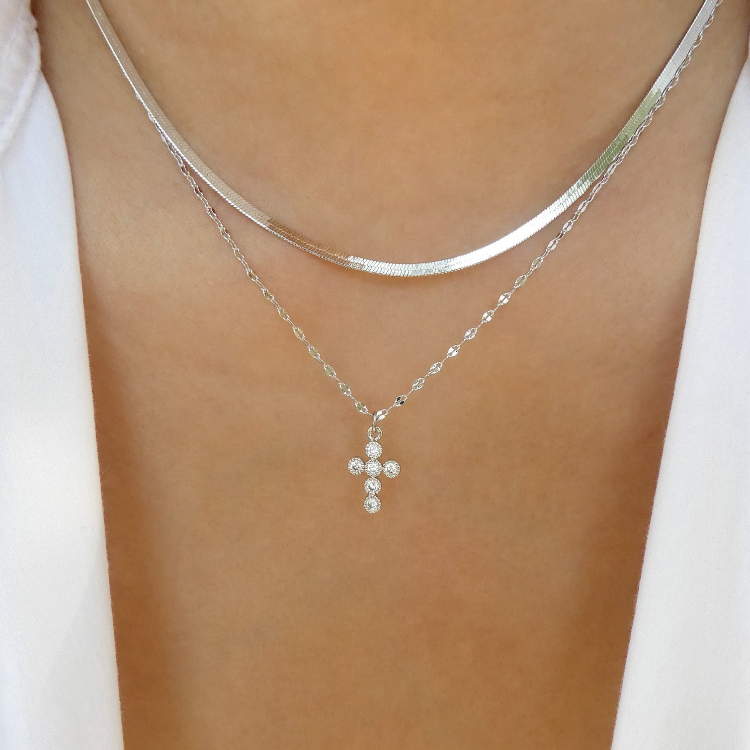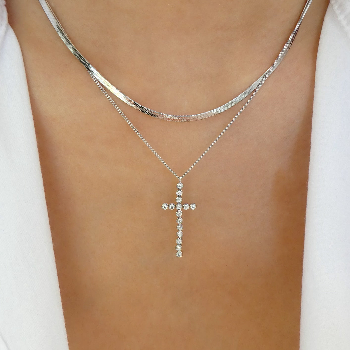 Crystal Cory Cross Necklace (Silver)