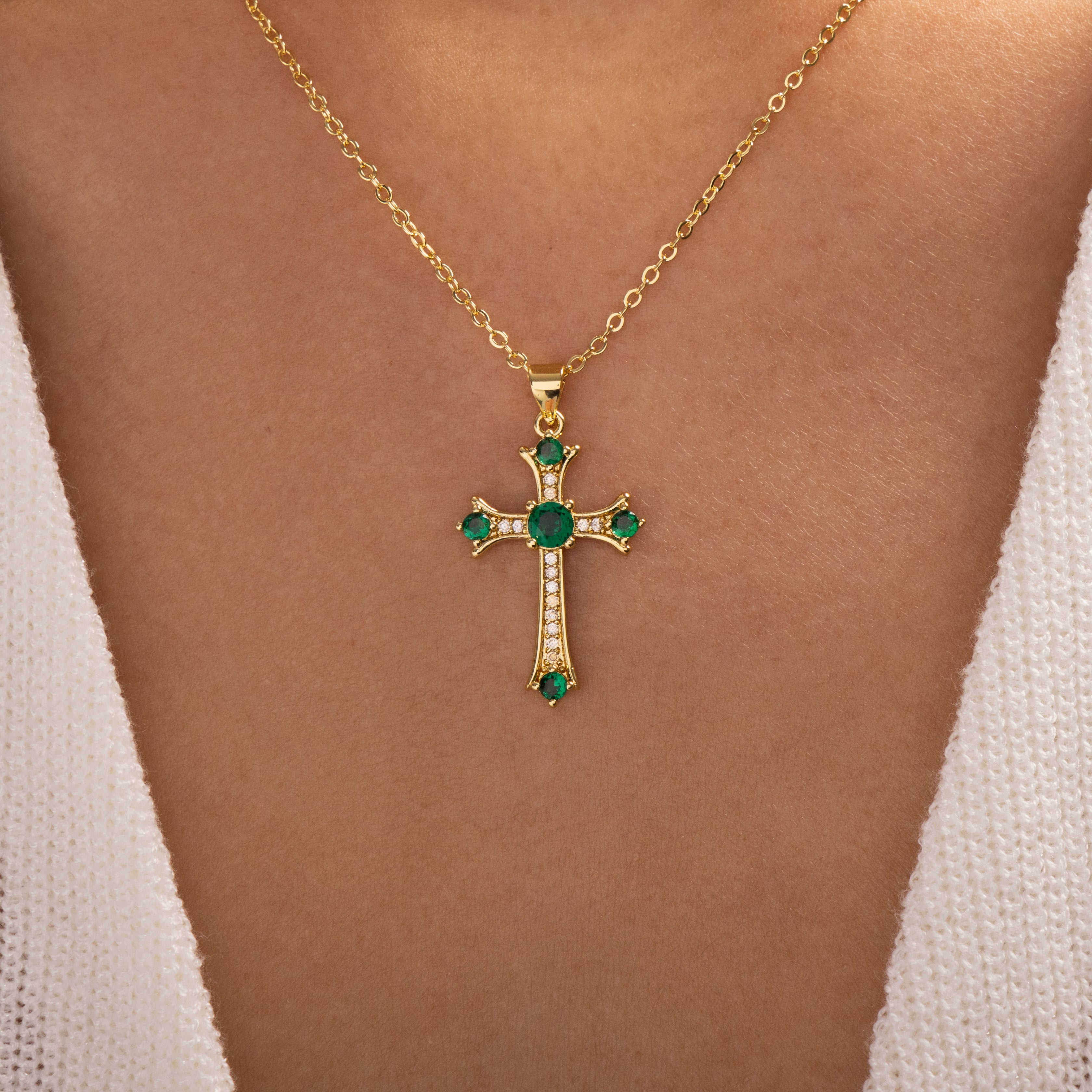 Crystal Laney Cross Necklace (Emerald)