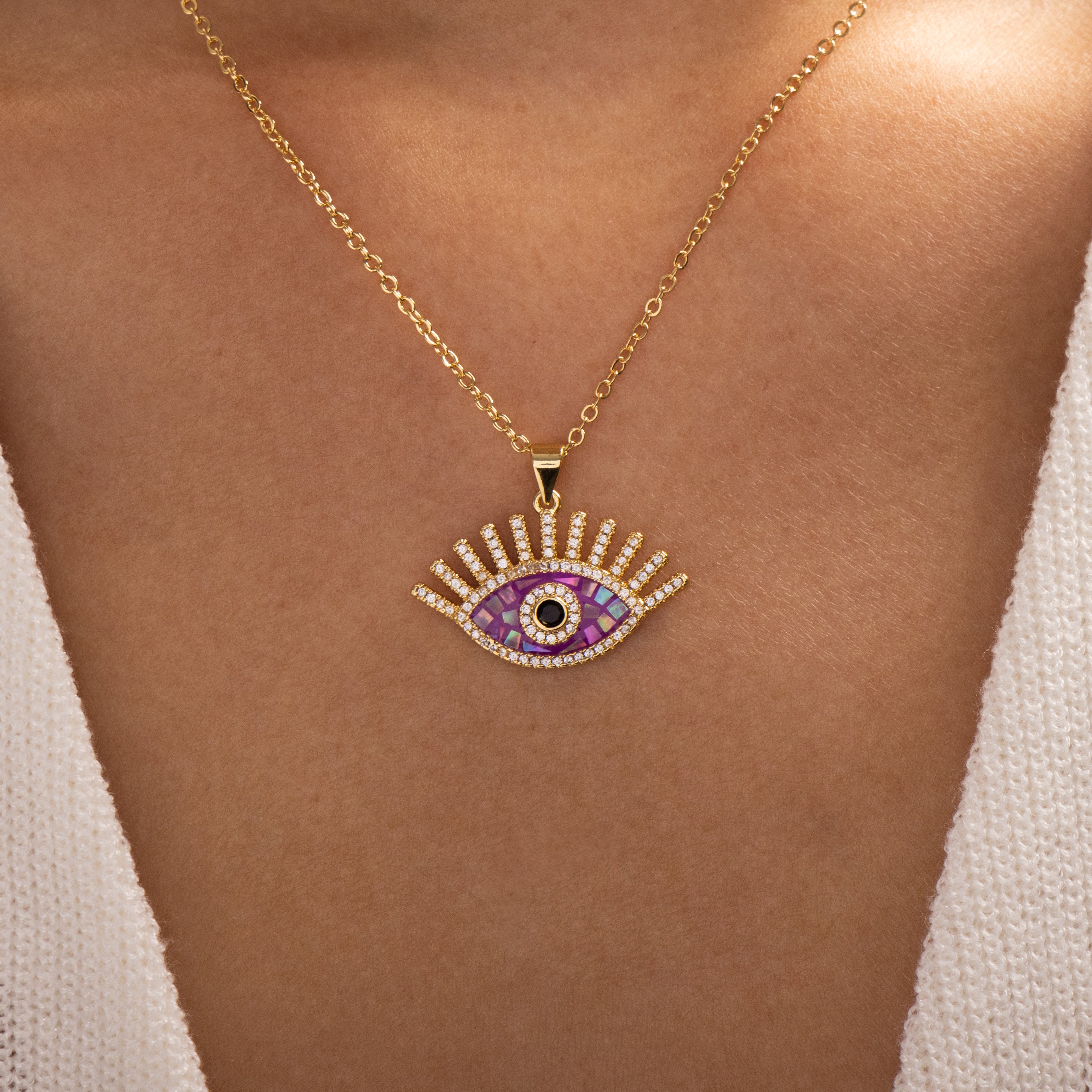 Iridescent Eye Necklace (Purple)