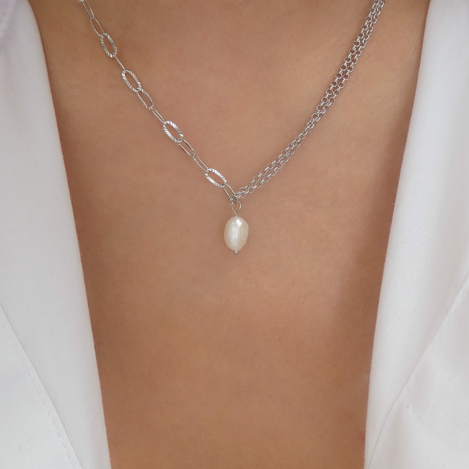 Pearl Link Necklace (Silver)