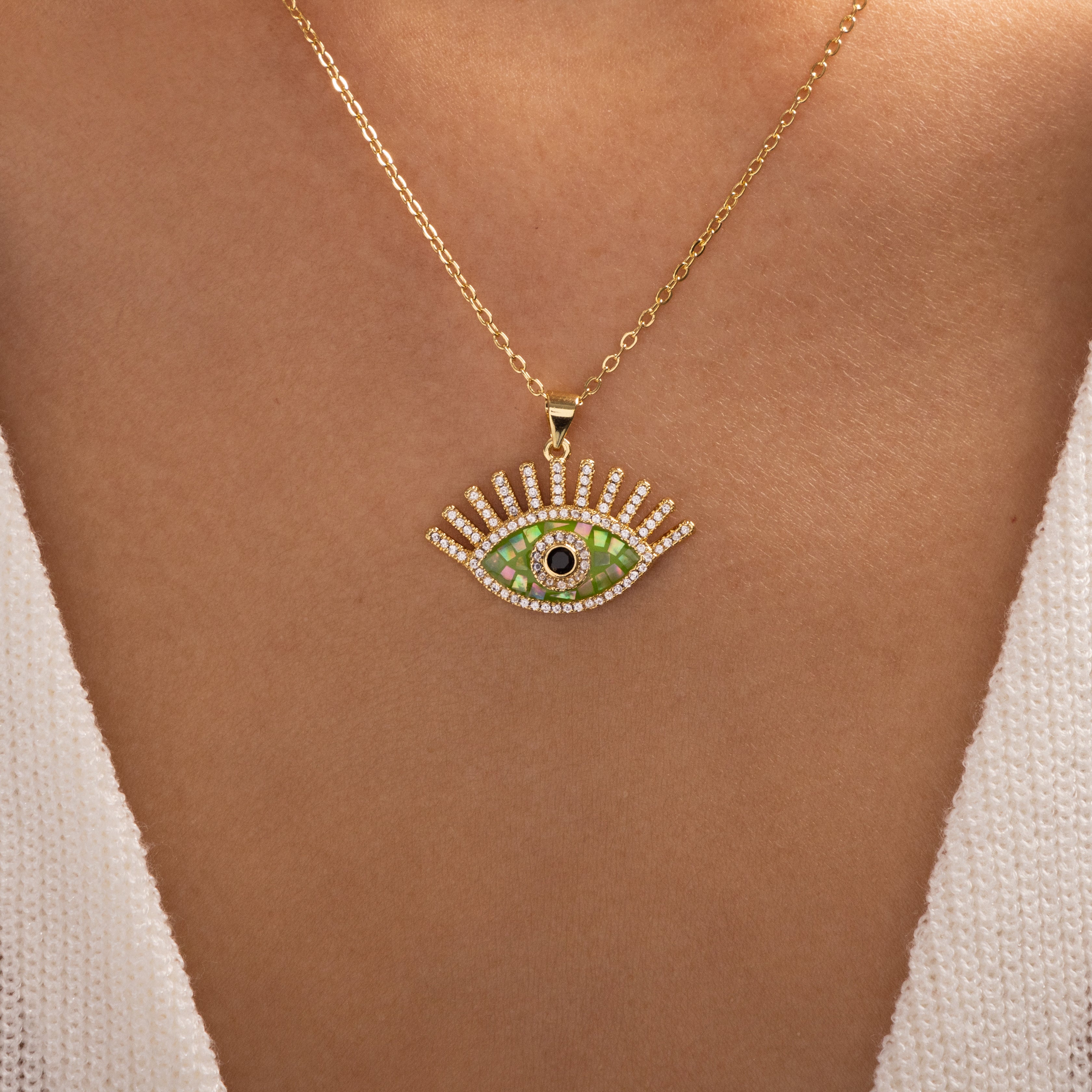 Iridescent Eye Necklace (Green)
