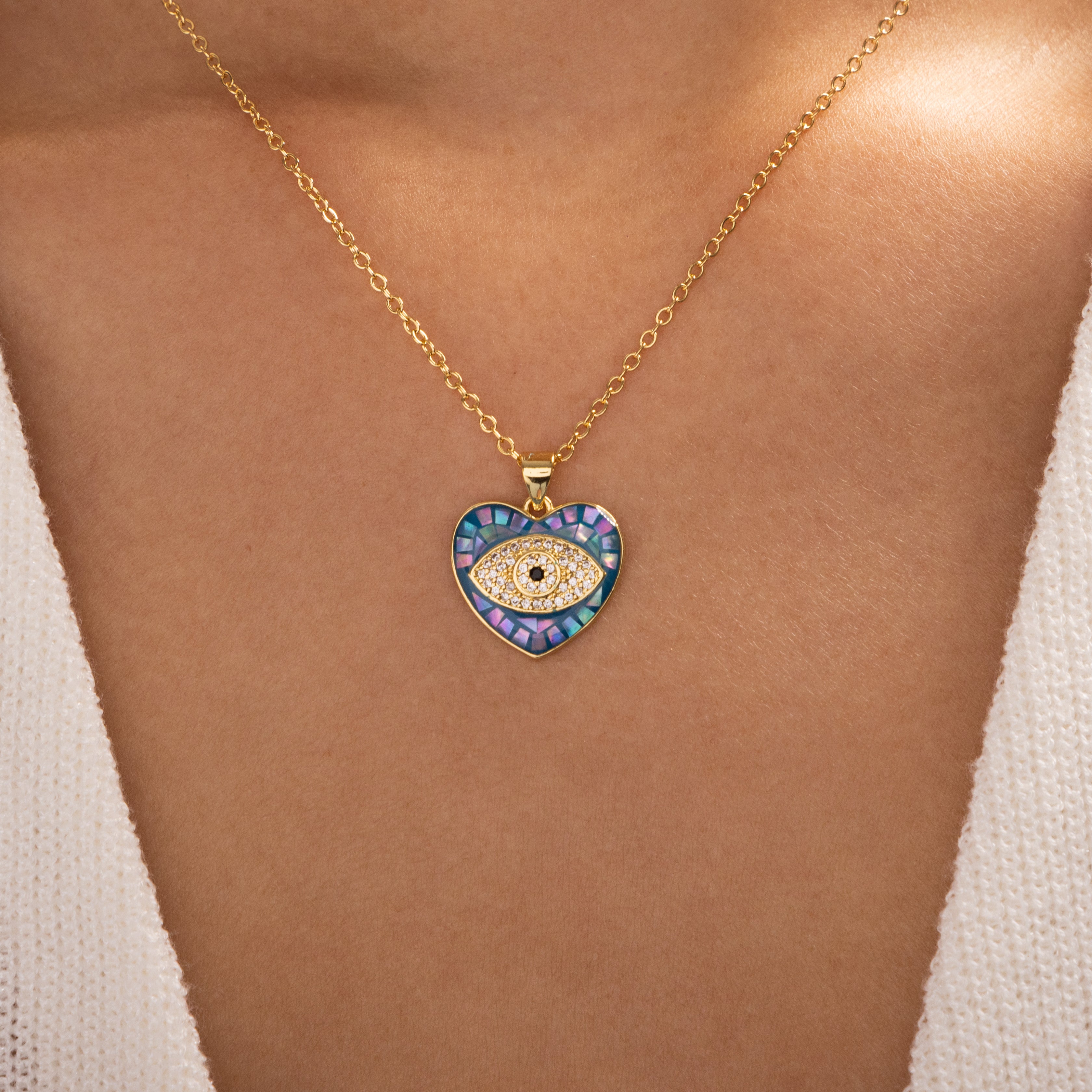 Iridescent Heart Eye Necklace (Blue)