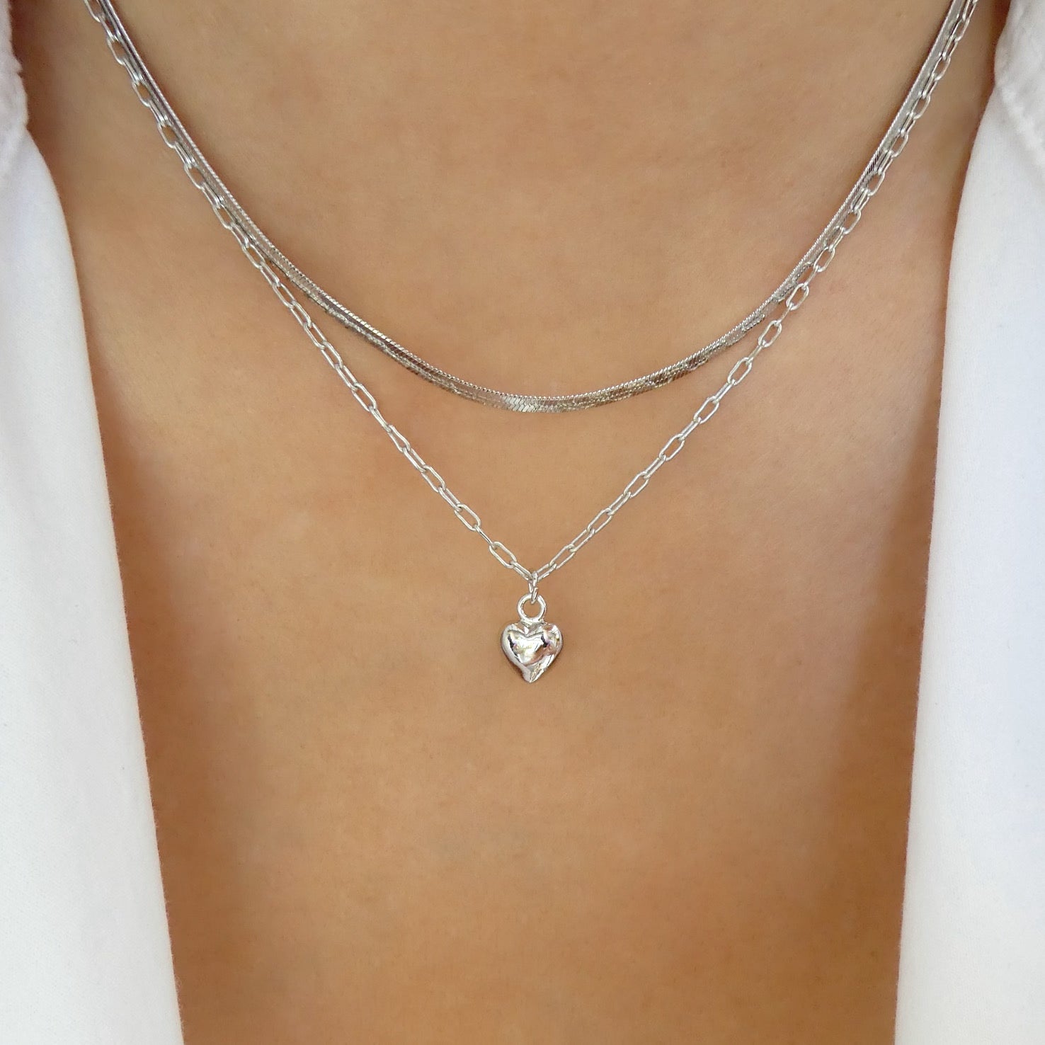 Small Heart Link Necklace (Silver)
