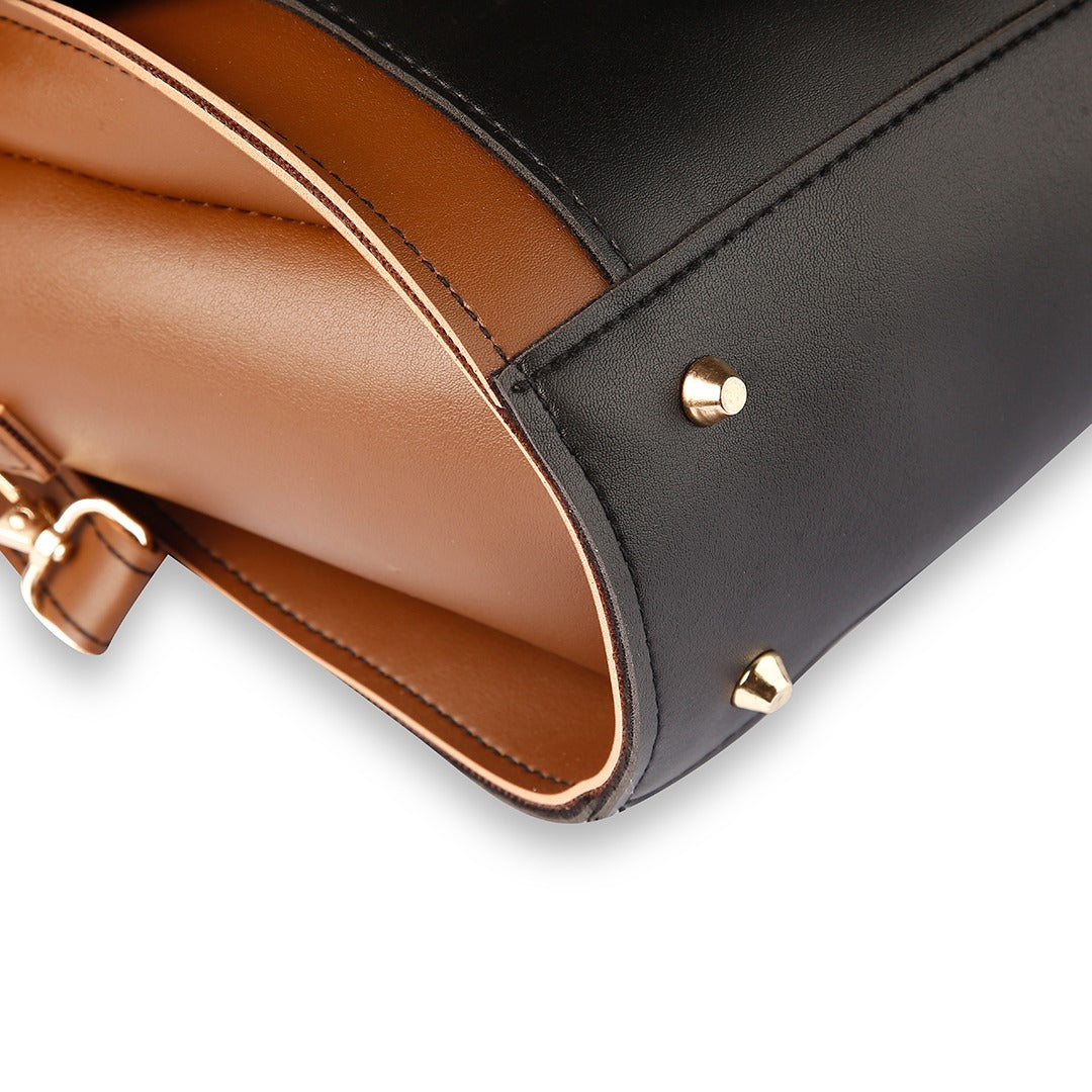 This elegant handbag features a chic two-tone color combination, perfectly complemented by a sleek golden buckle on the front. Its sophisticated design adds a touch of luxury, making it the ideal accessory for any occasion. Stylish and timeless, it's both practical and fashionable.