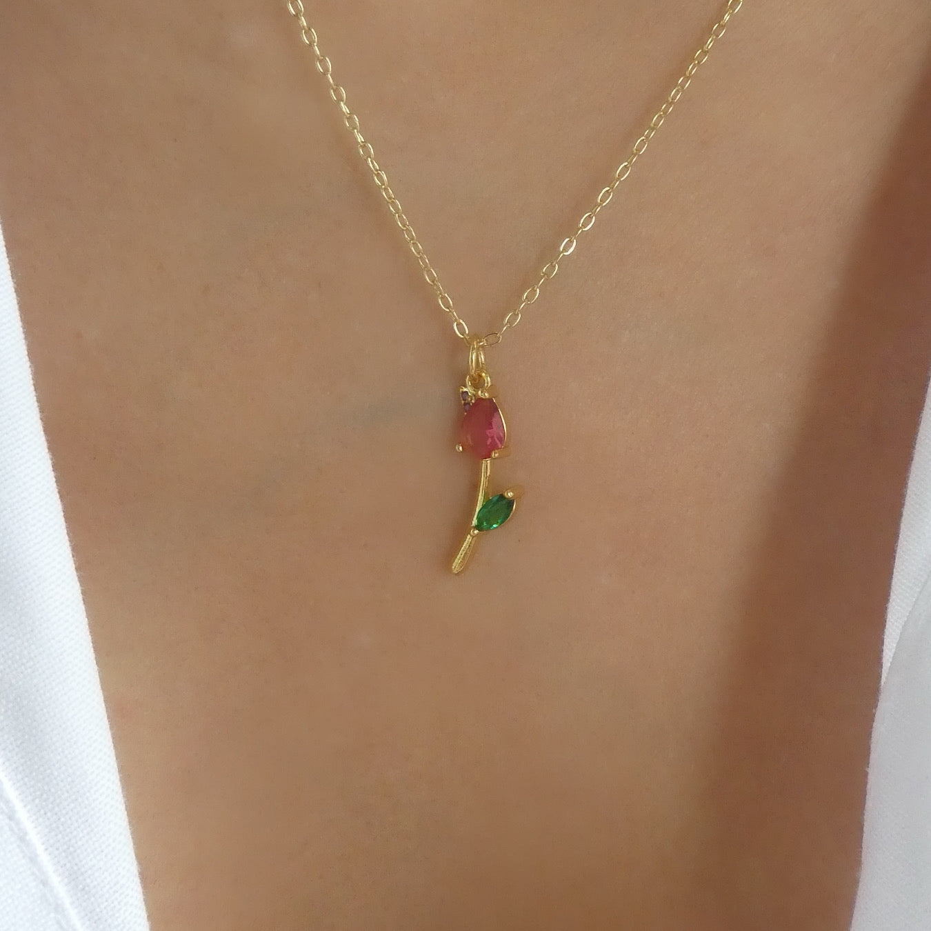 Mini Crystal Rose Necklace (Red)