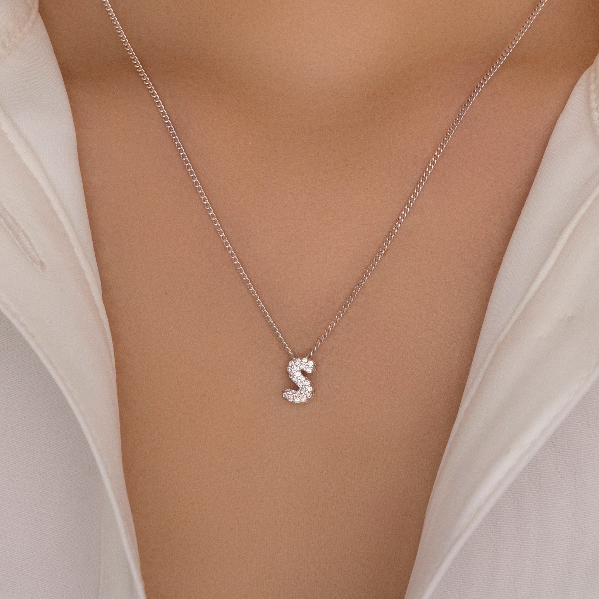 Mini Silver Crystal Letter Necklace (S)