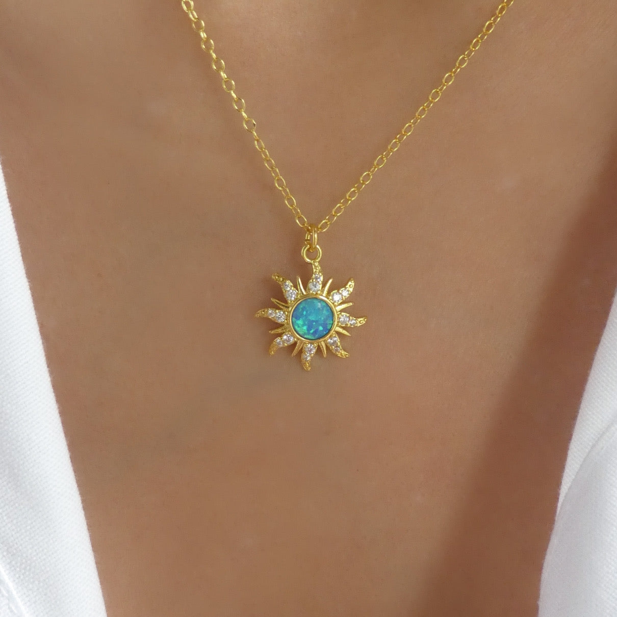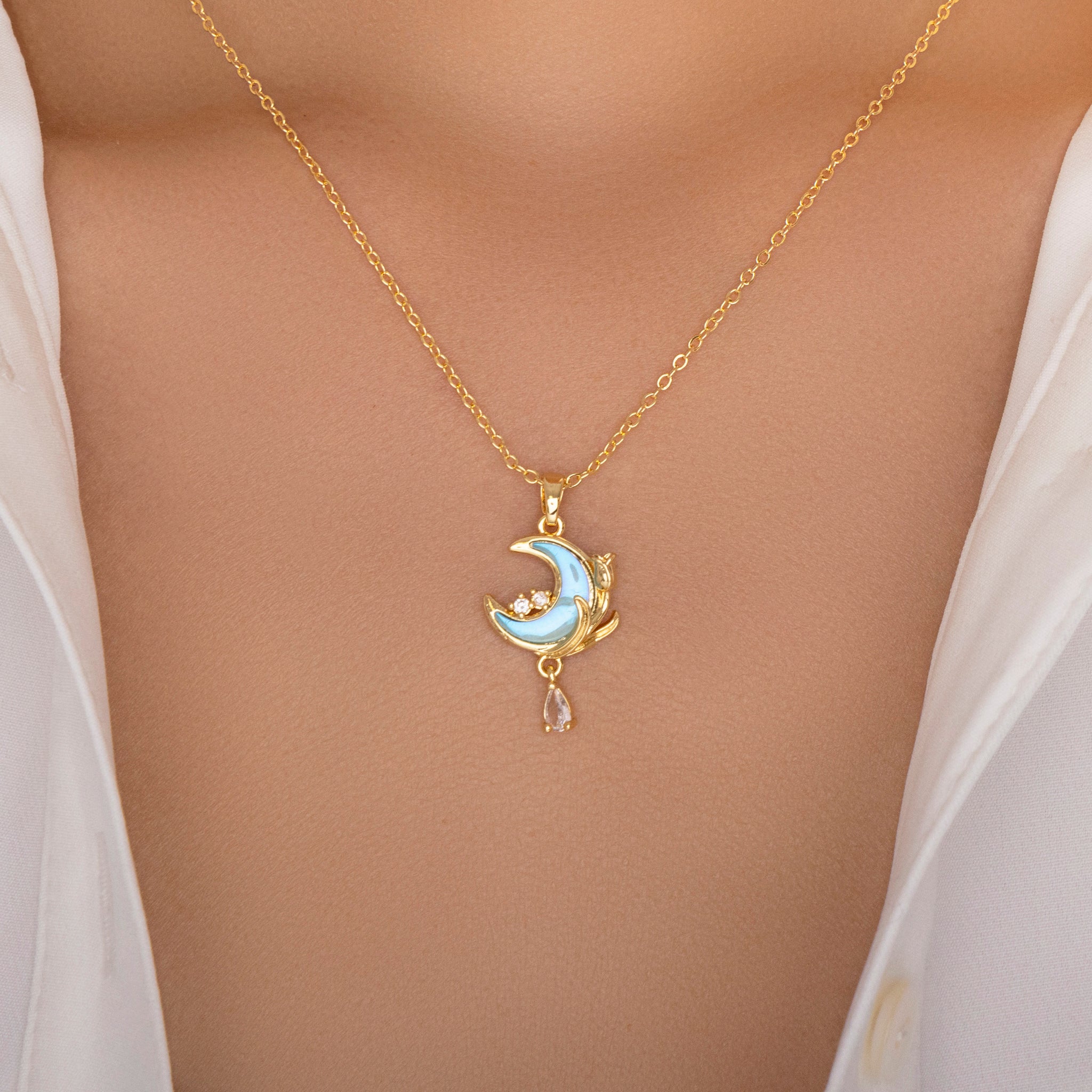 Iridescent Owen Moon Necklace (Turquoise)