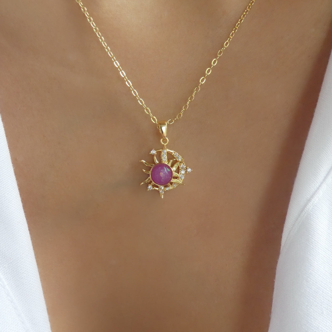 Iridescent Owen Moon Necklace (Pink)