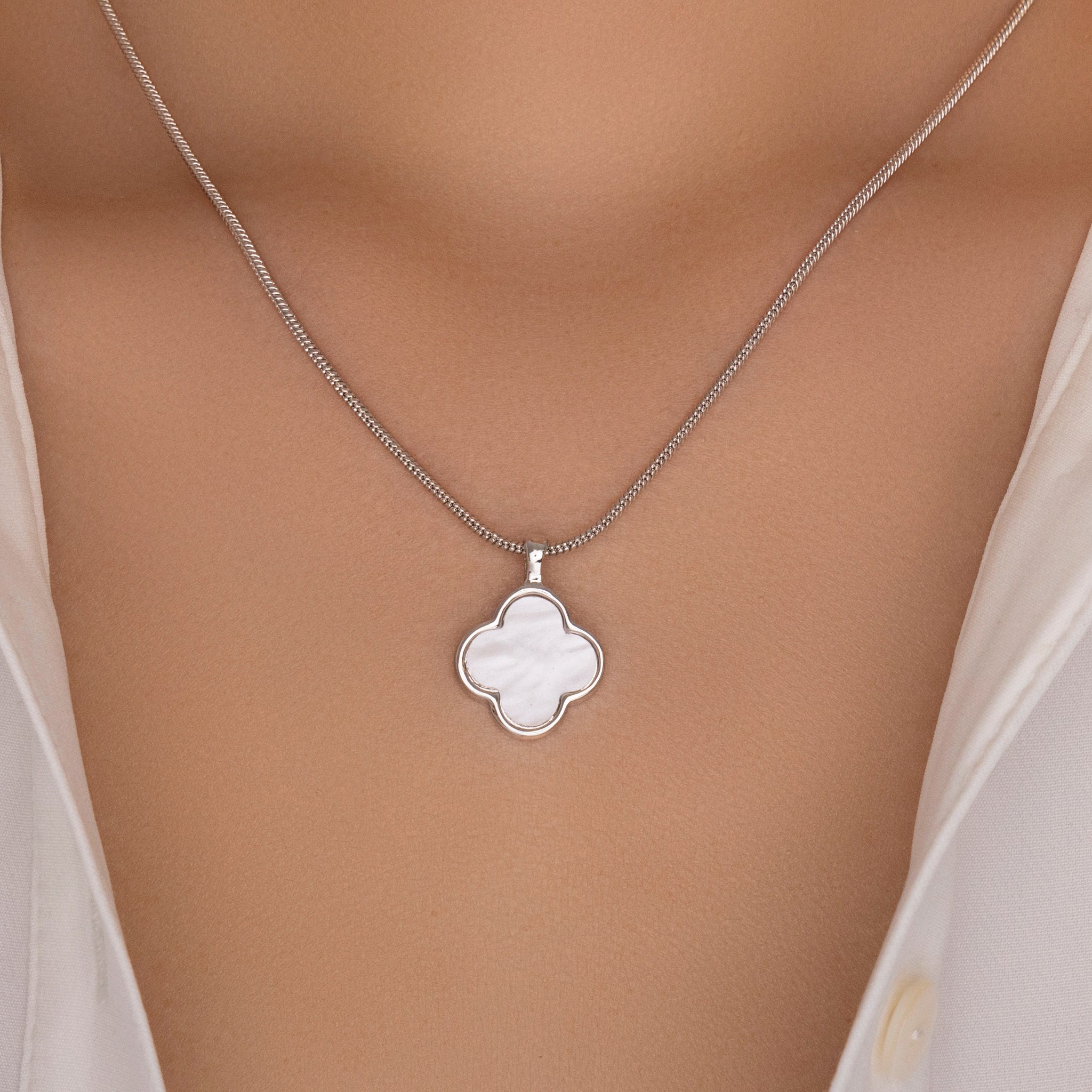 Silver Iridescent Owen Moon Necklace (White)