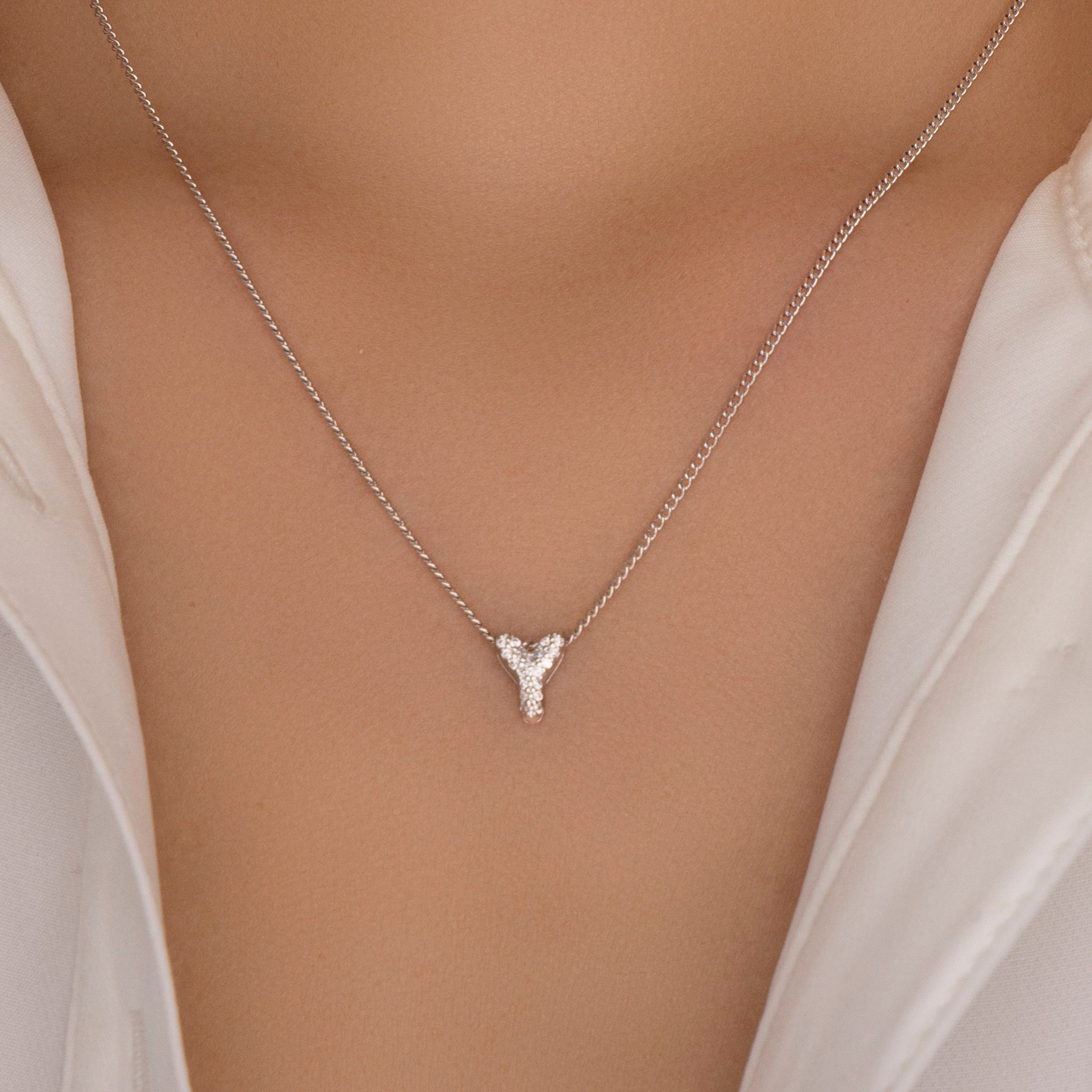 Mini Silver Crystal Letter Necklace (Y)