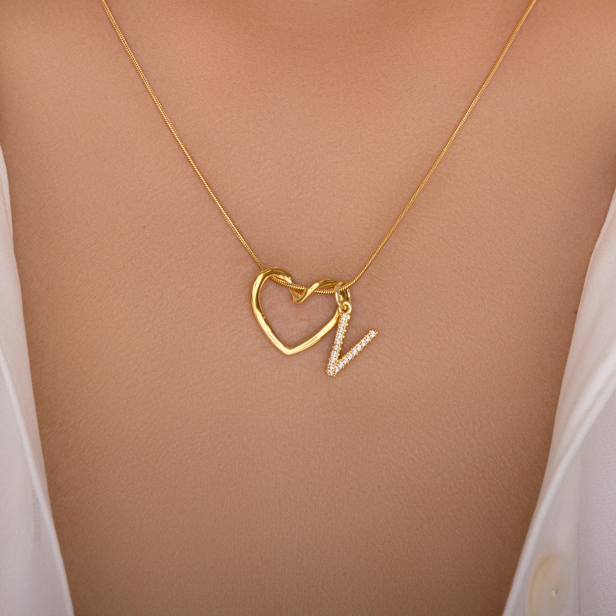 Crystal Letter & Heart Necklace (V)