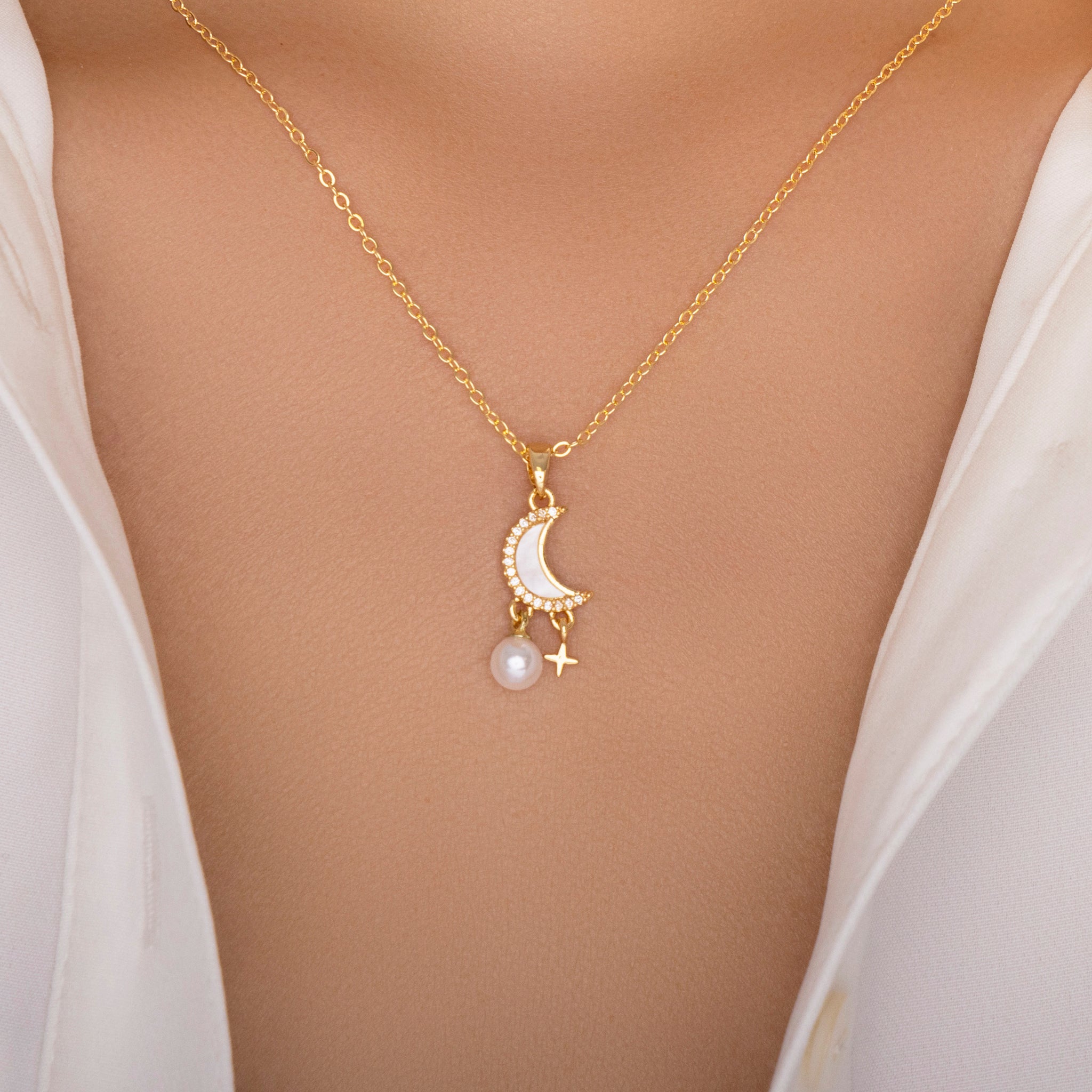 Small Moon & Pearl Necklace