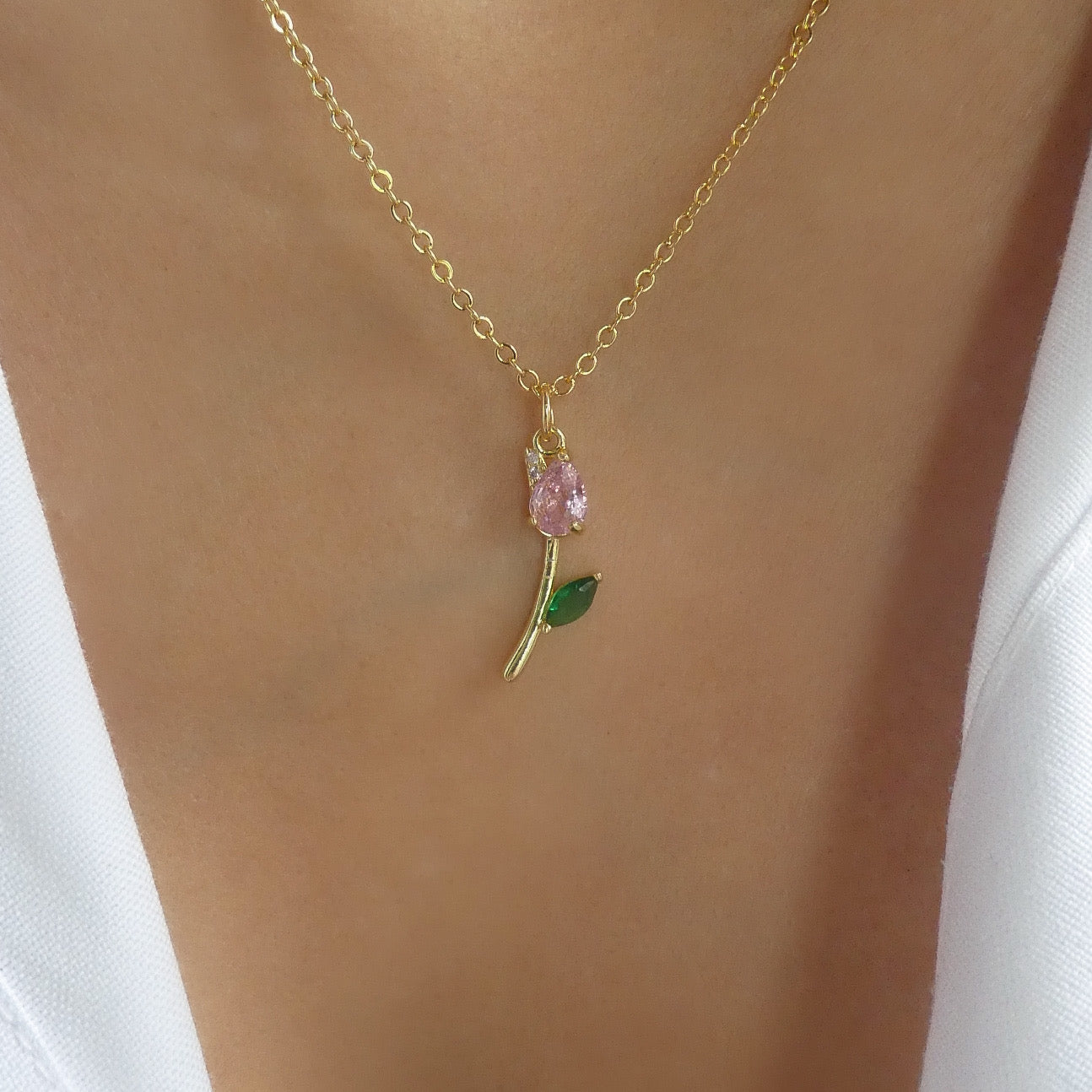 Mini Crystal Rose Necklace (Pink)