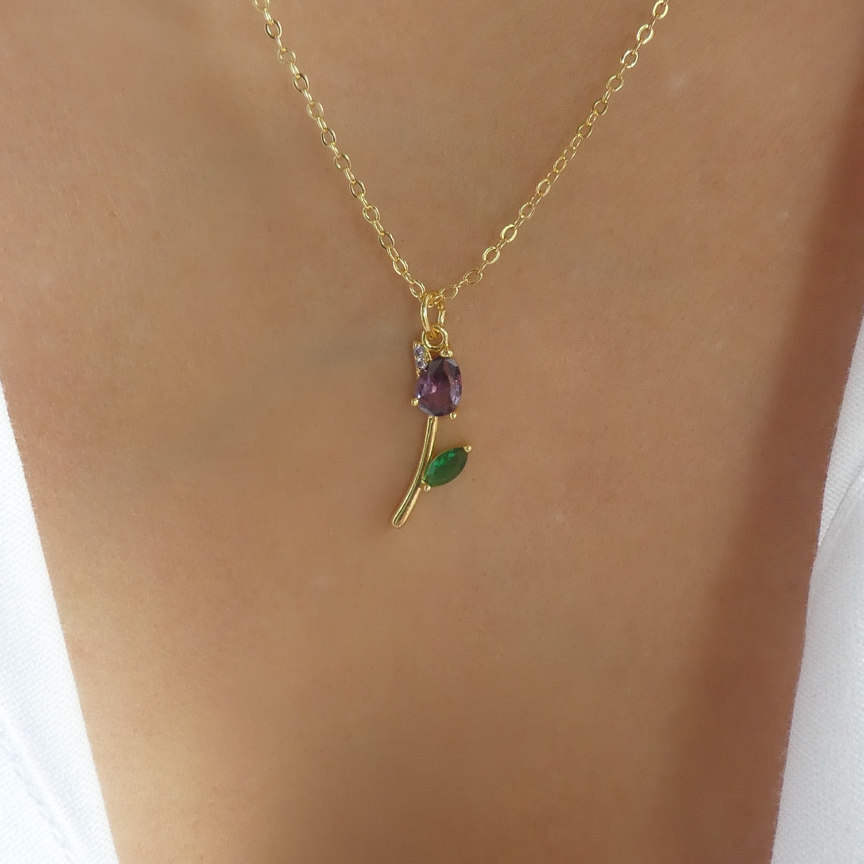 Mini Crystal Rose Necklace (Purple)