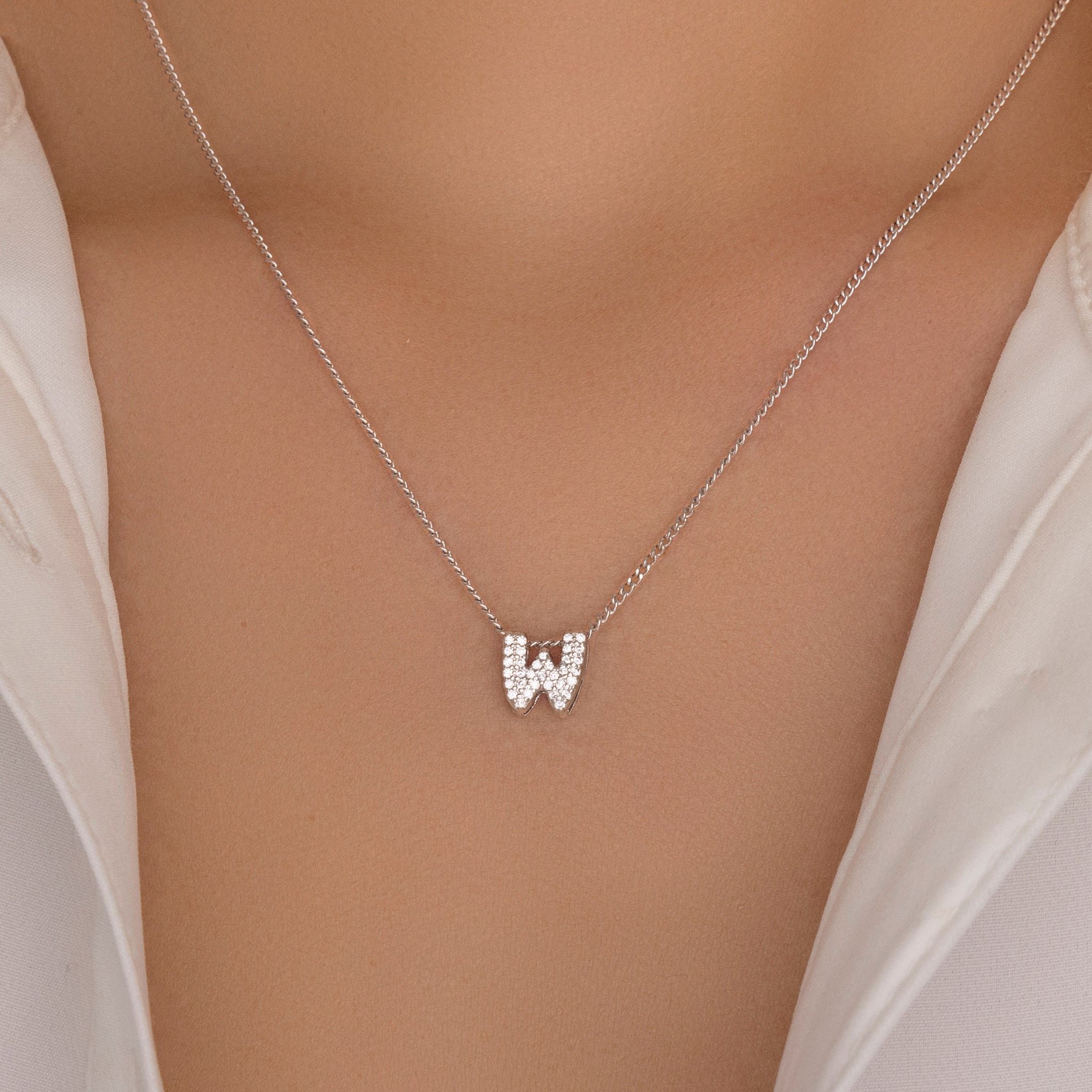 Mini Silver Crystal Letter Necklace (W)