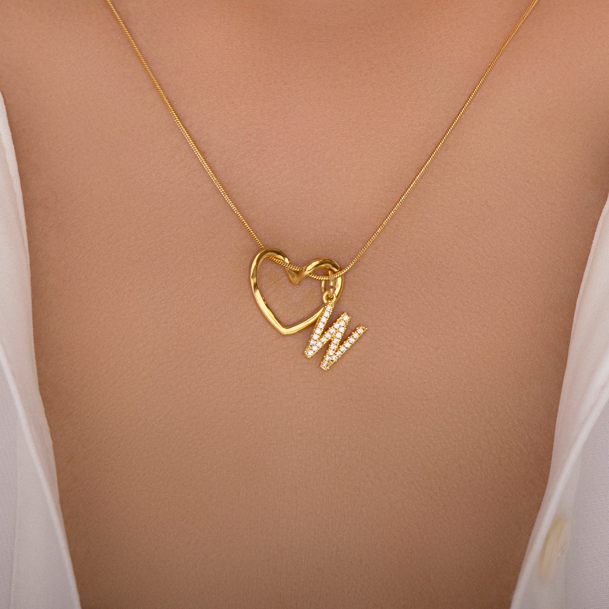 Crystal Letter & Heart Necklace (W)