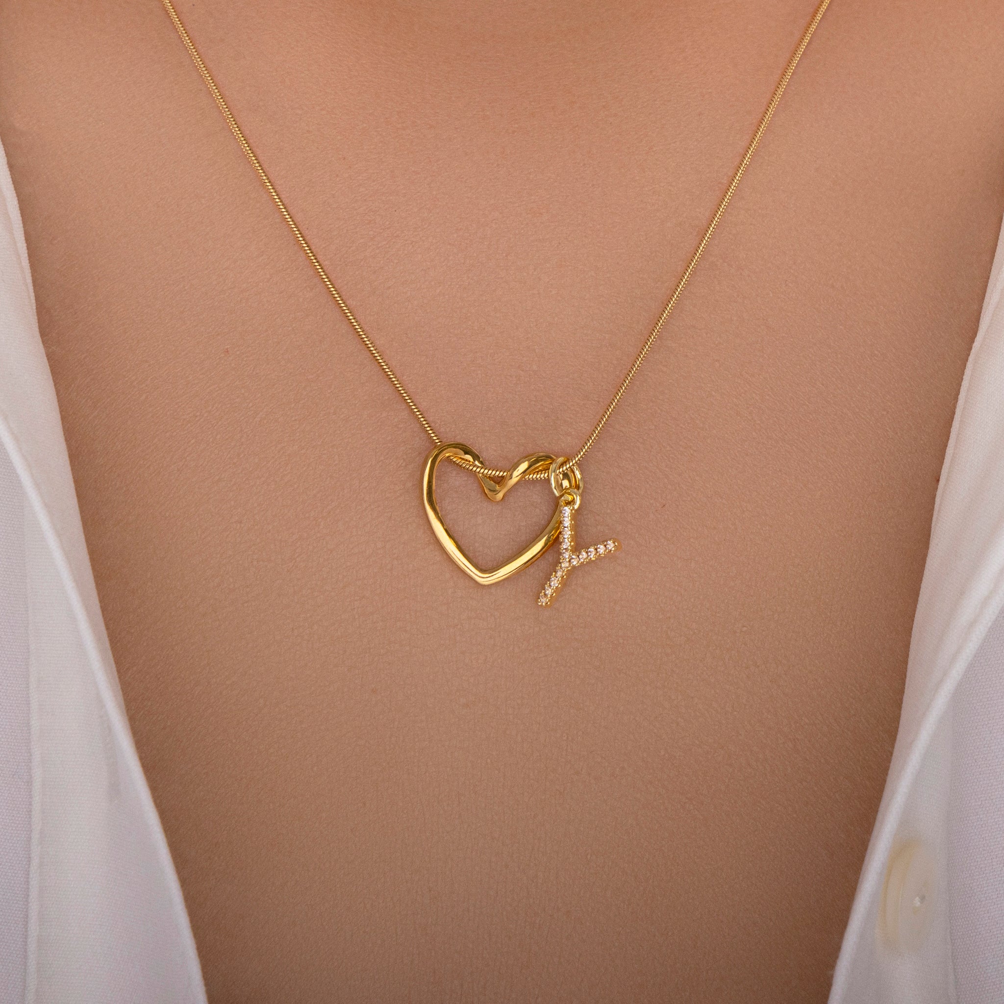 Crystal Letter & Heart Necklace (Y)