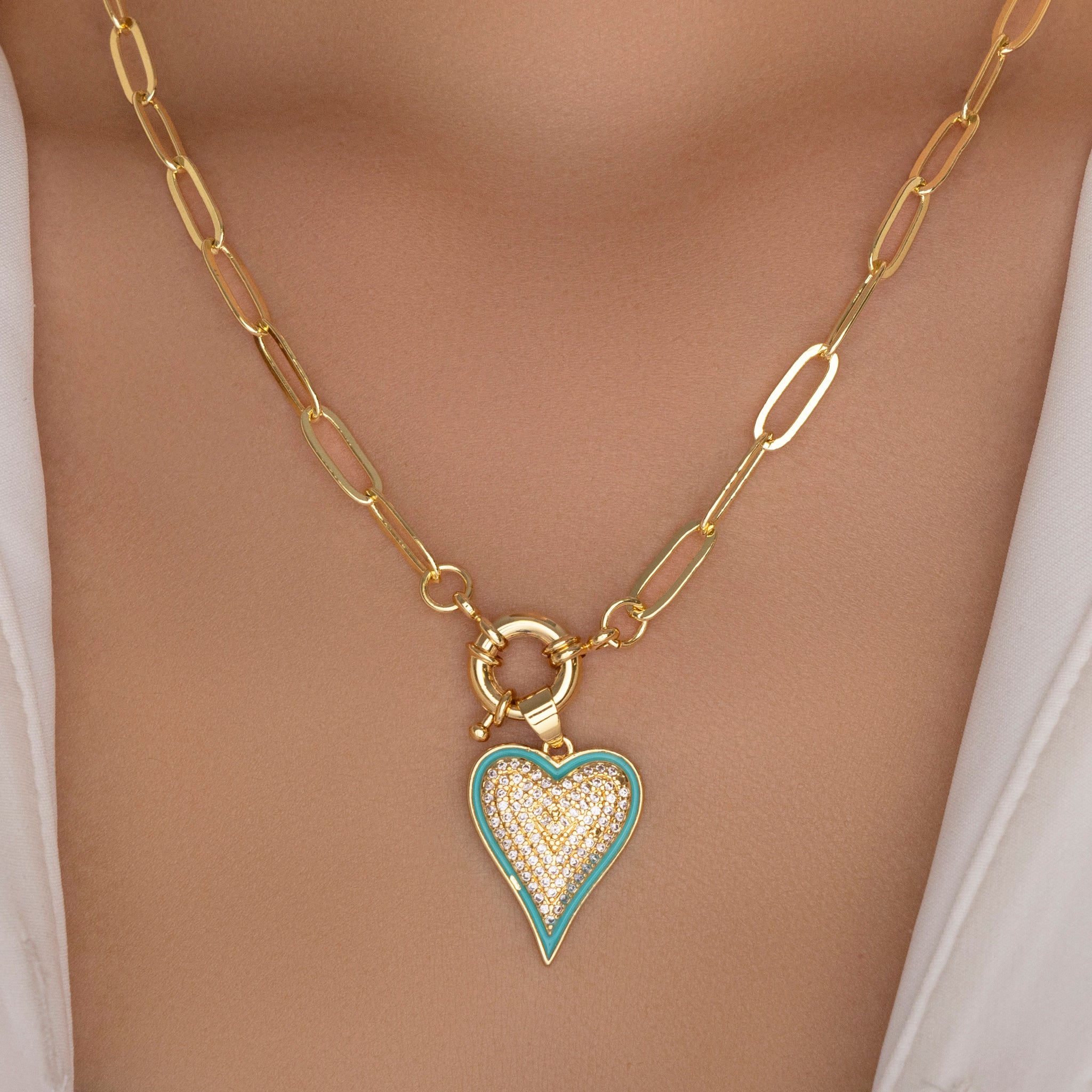 Angela Crystal Heart Necklace (Turquoise)