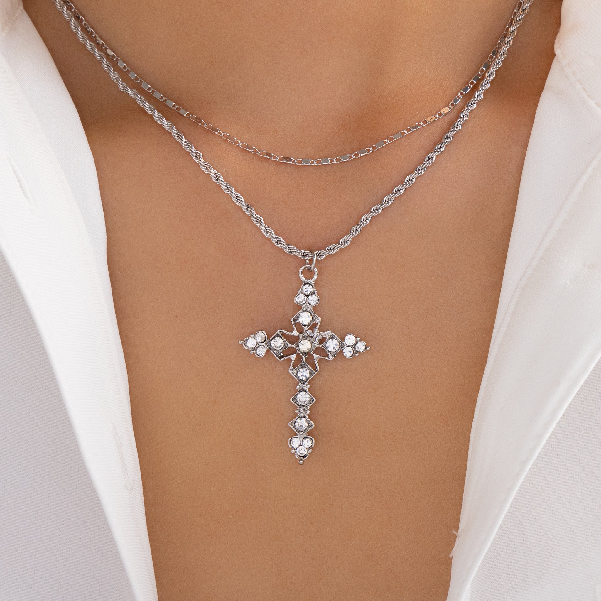 Evelyn Cross Necklace (Silver)
