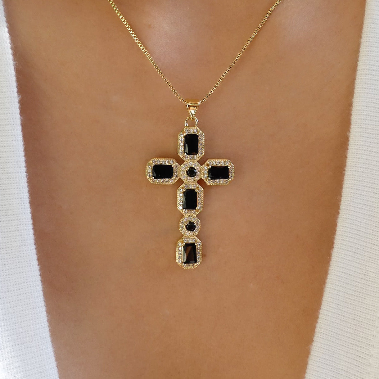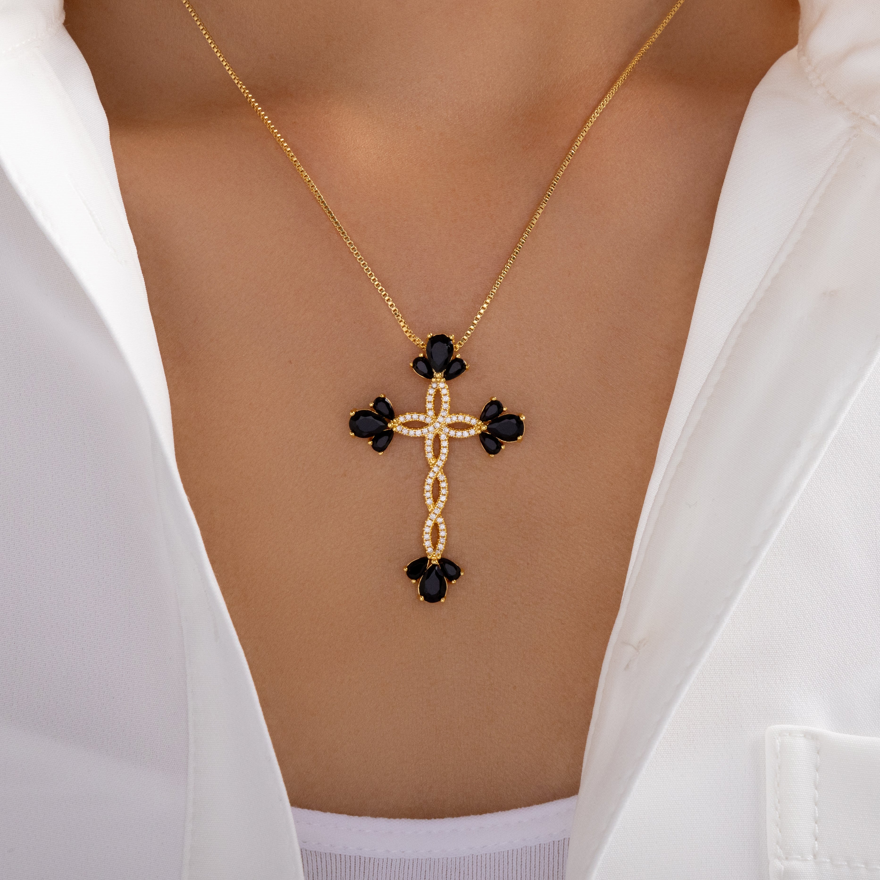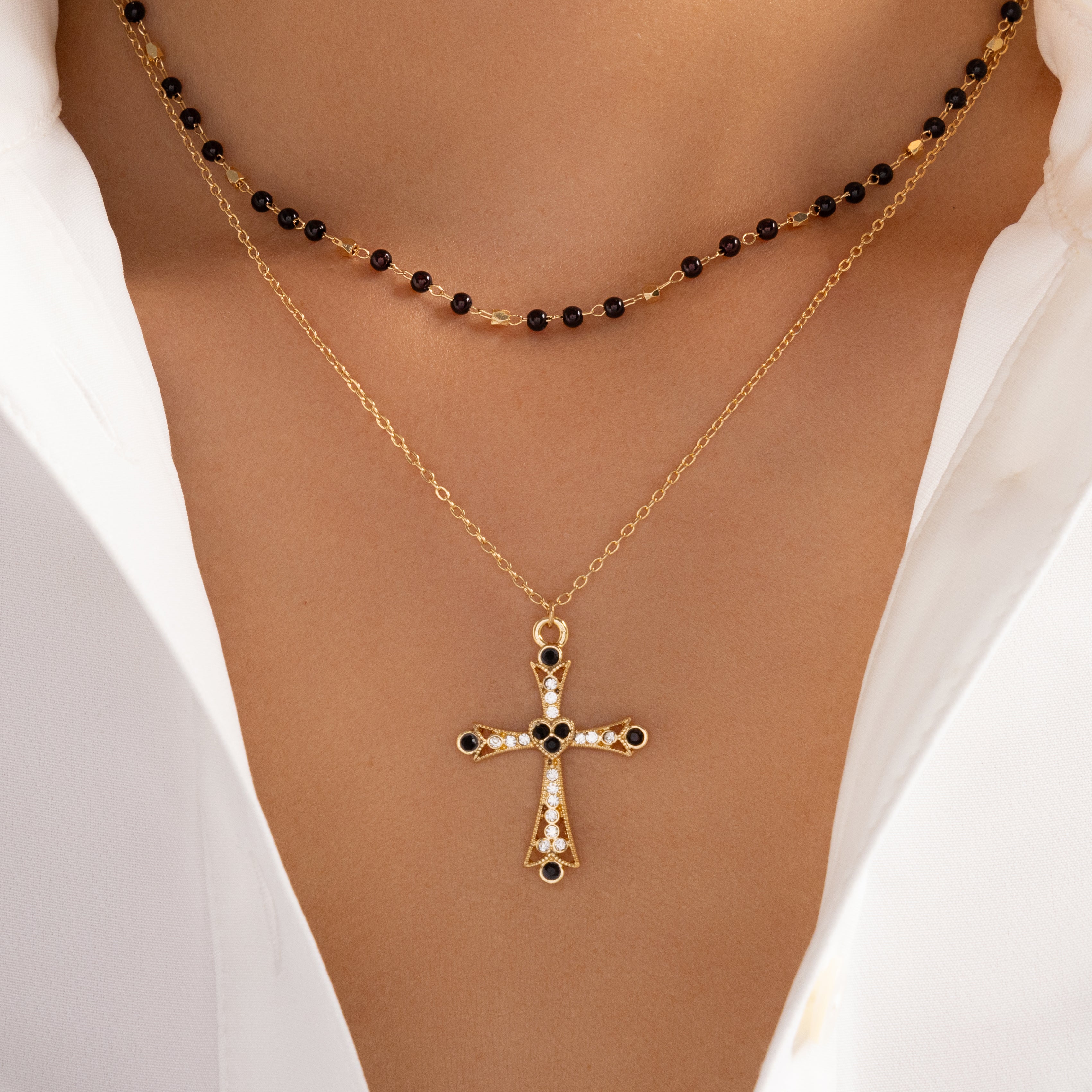 Veronica Cross Necklace (Black)