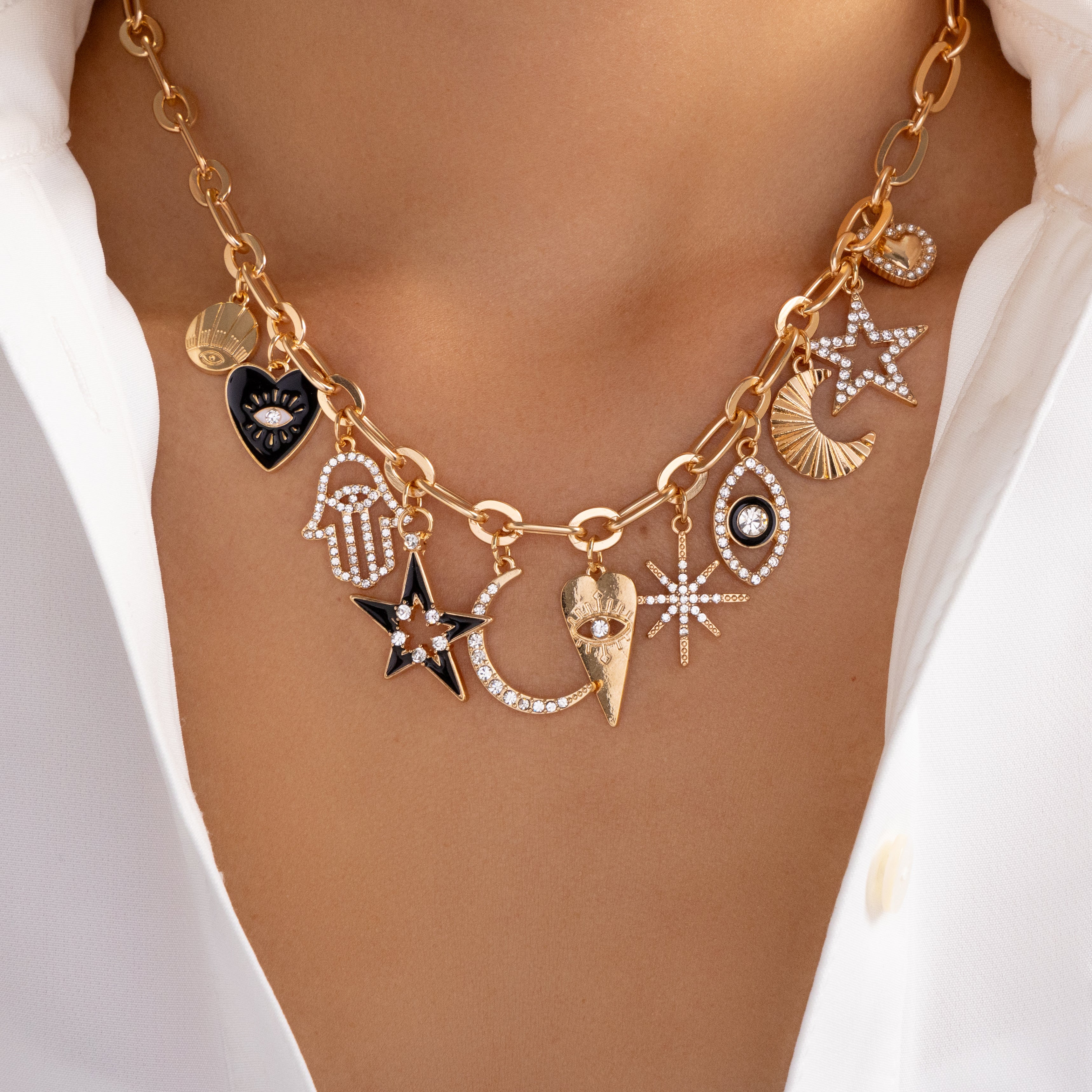 Hamsa & Eye Charm Necklace