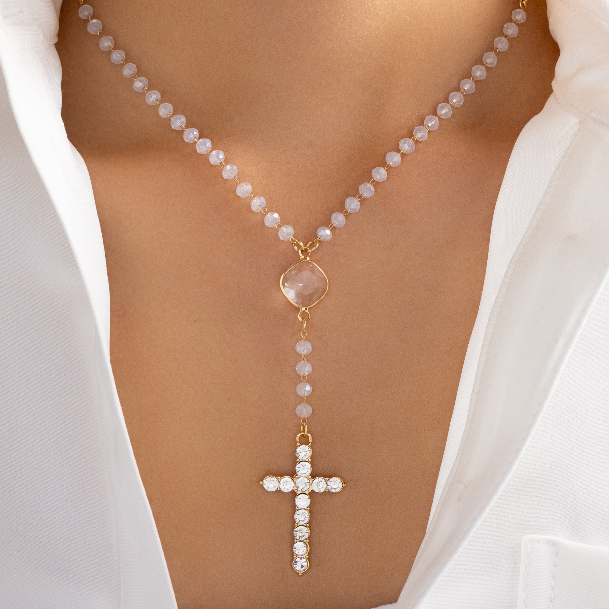 Edith Cross Necklace (White)