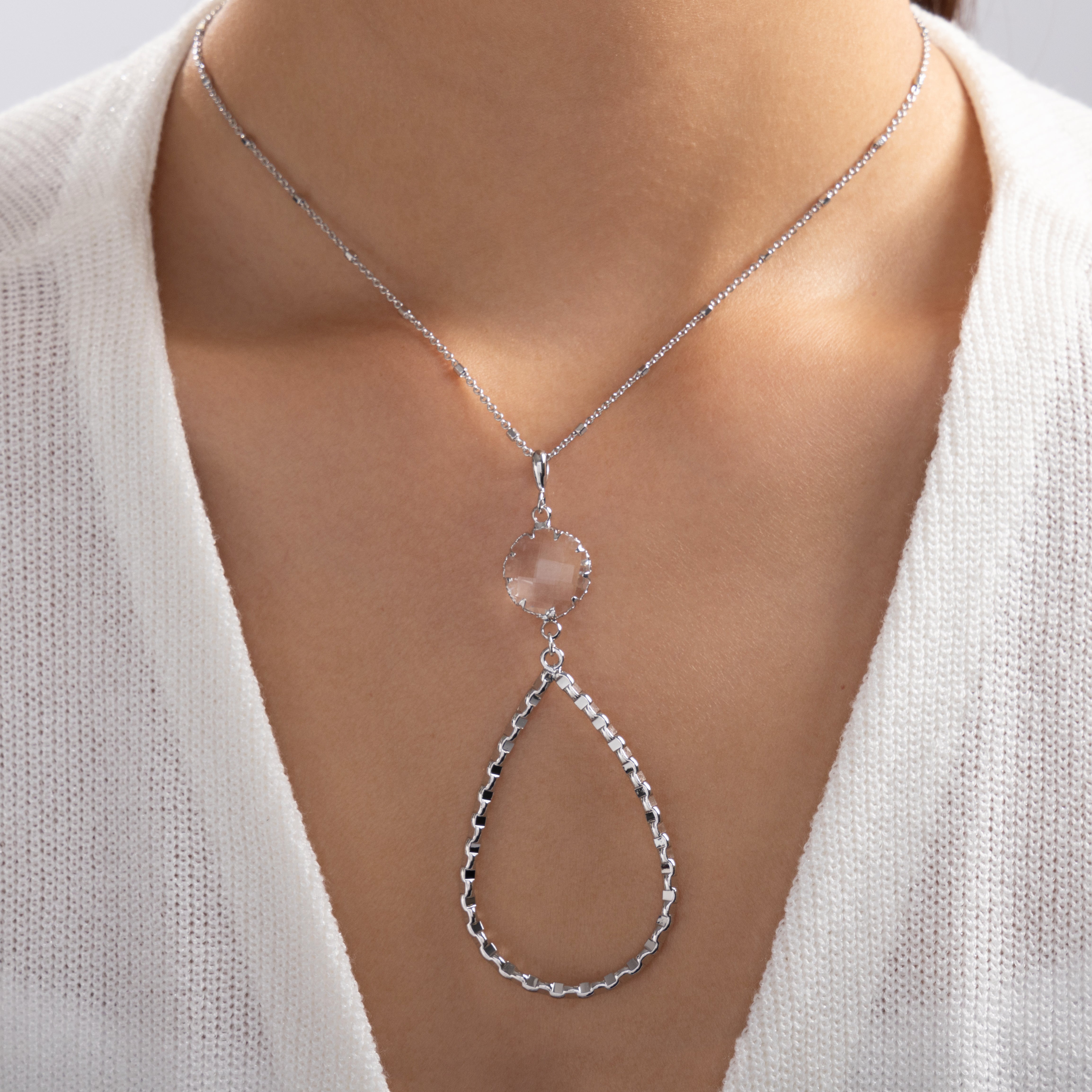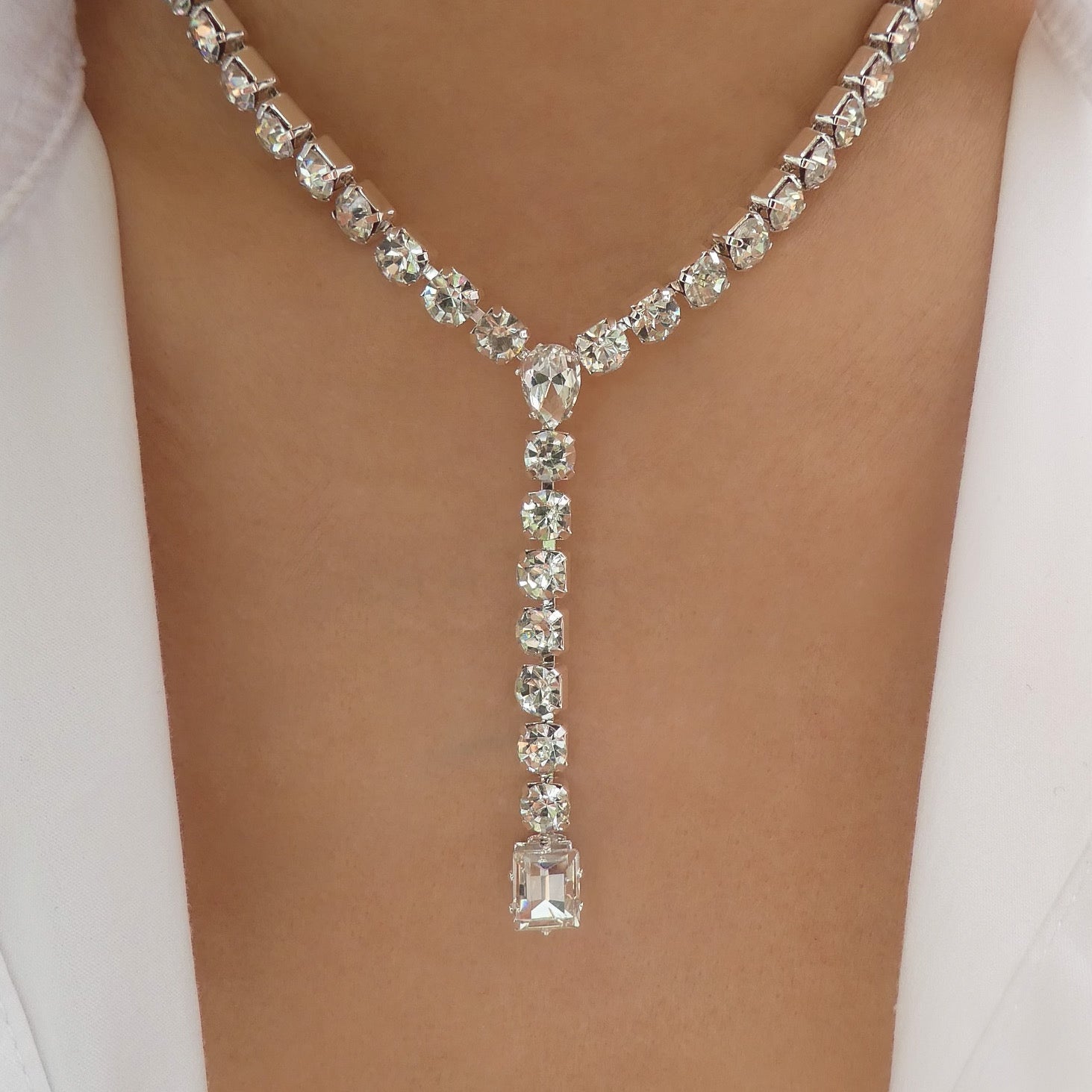 Silver Crystal Drop Necklace