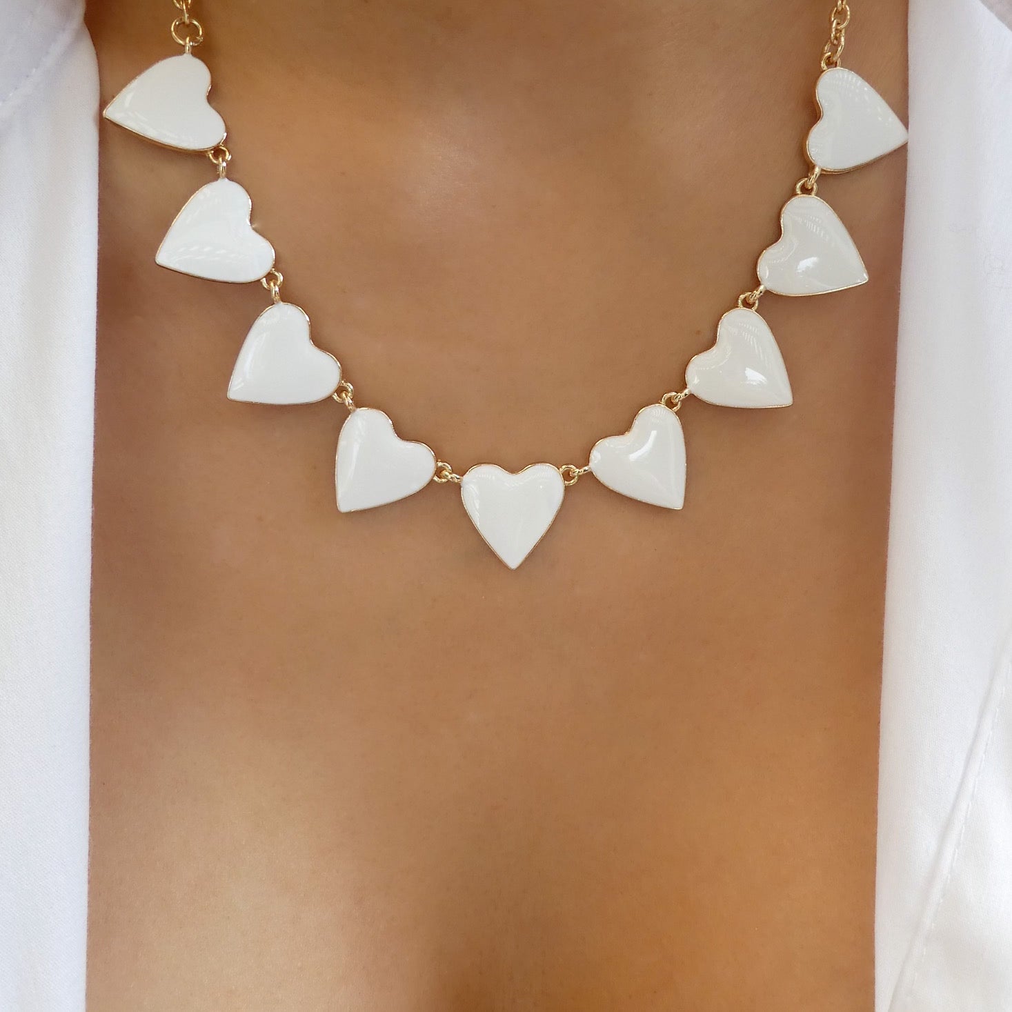 Heart Row Necklace (White)