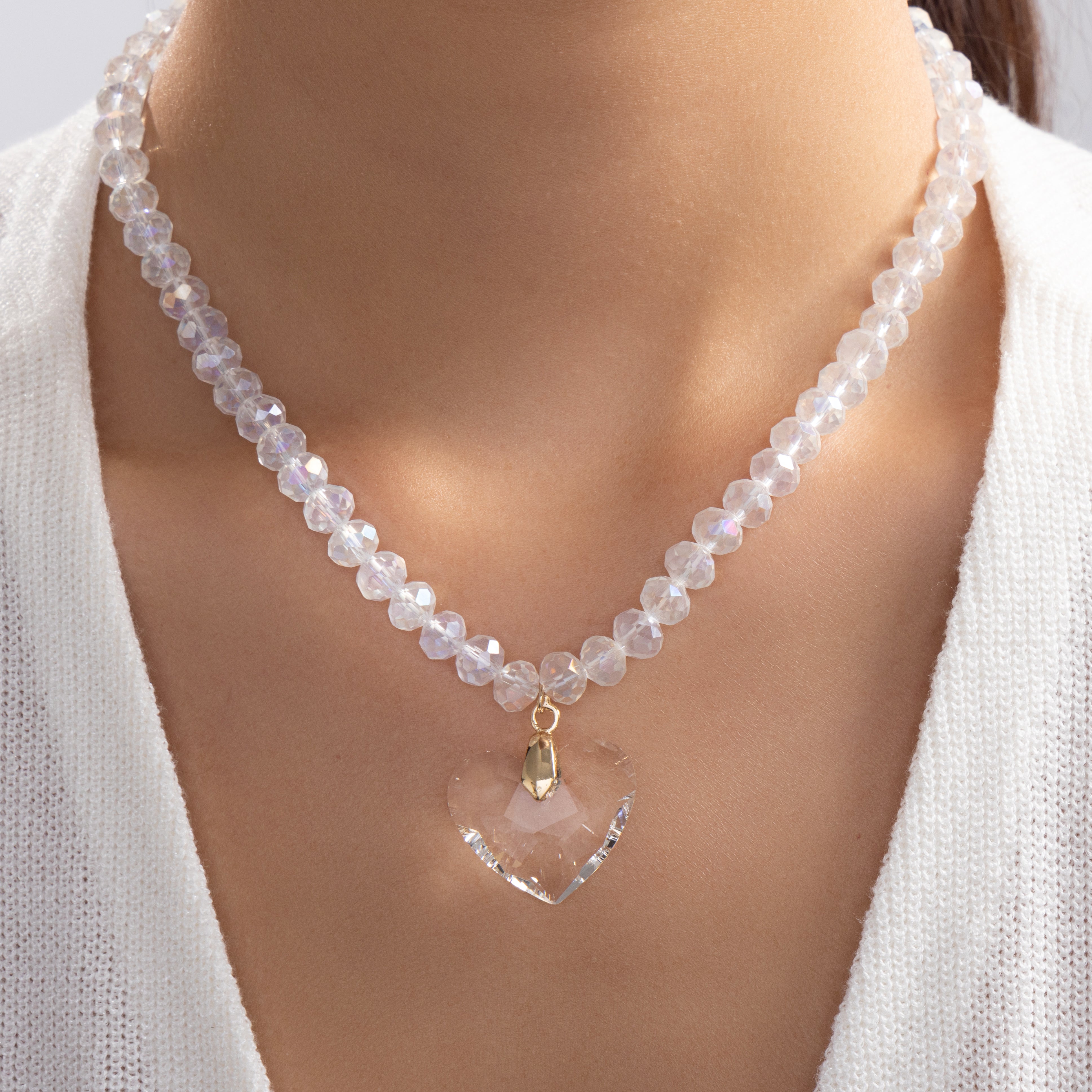 Clear Bead & Heart Necklace