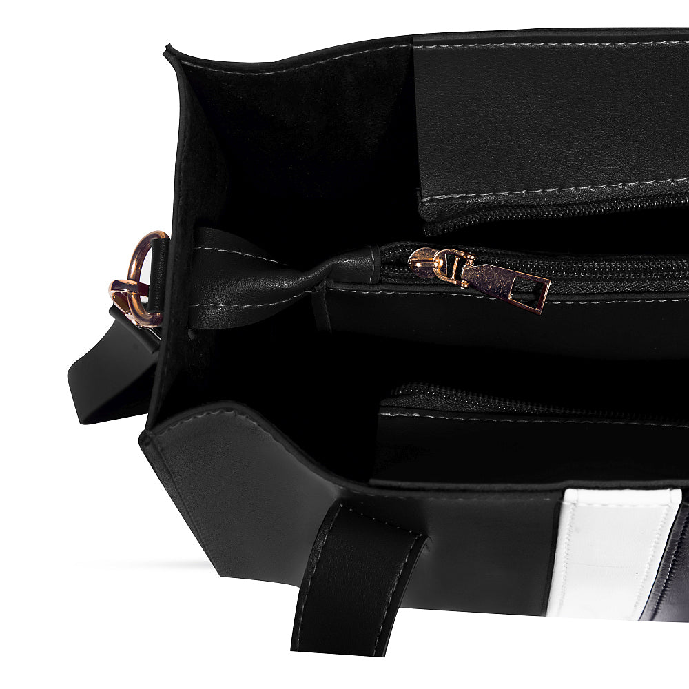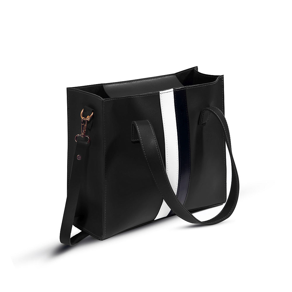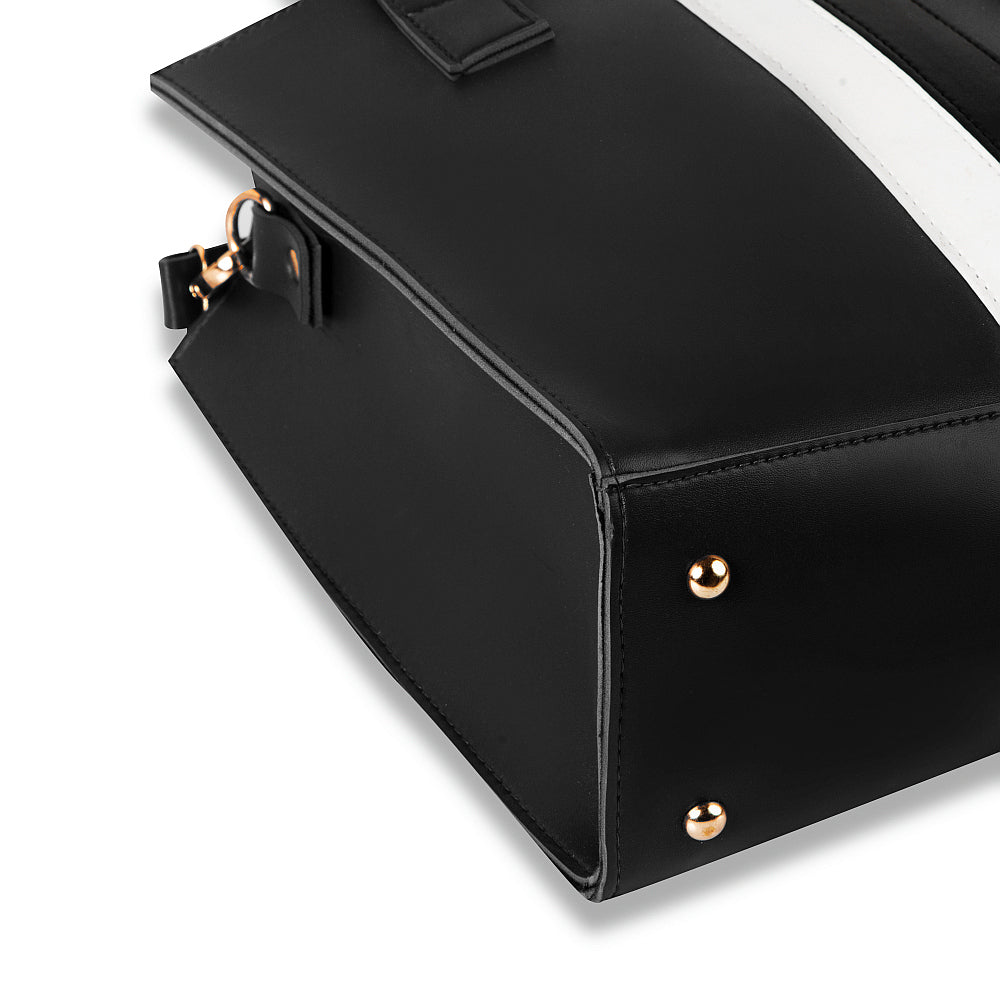 This LUNA tote Shoulder Bag is made from premium vegan leather, making it a lightweight and durable accessory. The spacious main compartment has a top zipper closure to securely store your items with ease. The additional studs at the bottom of the bag provide extra protection against scratches, making it perfect for everyday use and university life. Inside compartment with zip closure provides you to synchronize your belongings. Front contrast black and white stripe makes this trendy bag more attractive and matches with your gorgeous outfits.