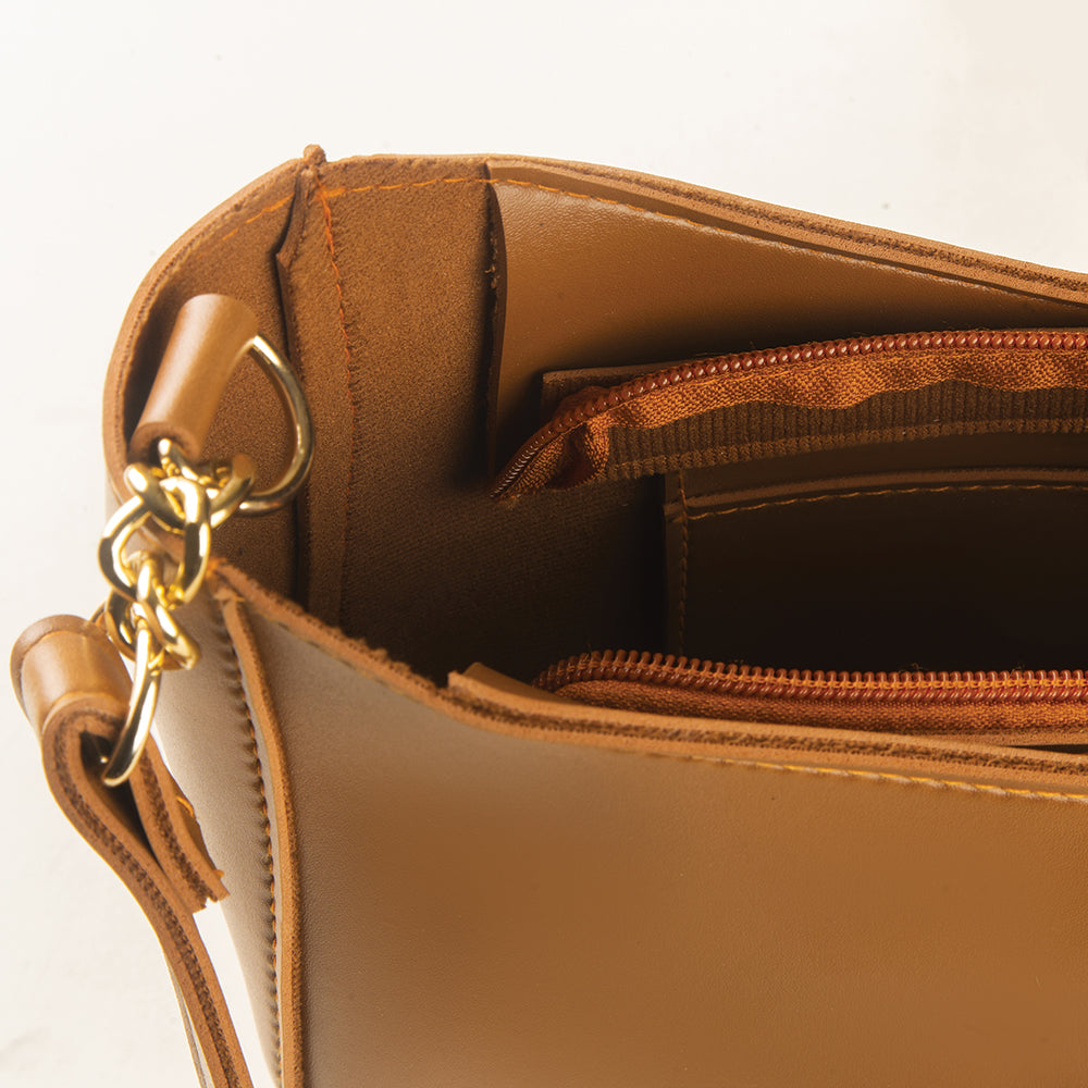 Bloom bag is made from premium materials like genuine leather, high-quality synthetic leather, or durable fabric.The stylish golden chain and buckle on the front add a luxurious touch, while the make it perfect for any outfit.it includes an inside pocket for easy organizationThis handbag offers the perfect balance of style and functionality, ensuring you look elegant while keeping your essentials organized.This lightweight bag is comfortable to carry.