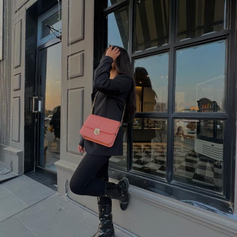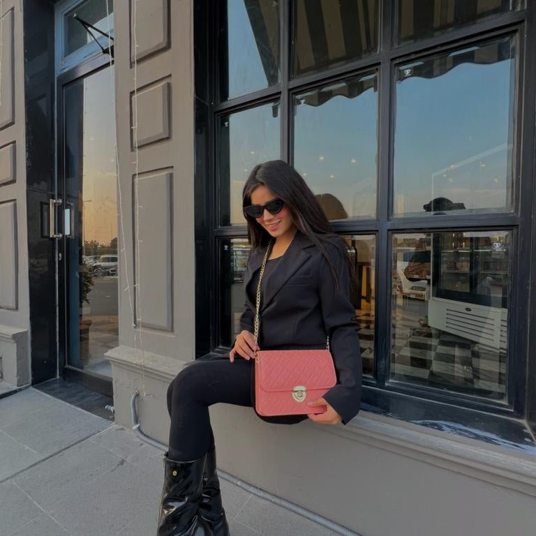 NORAH PINK HANDBAG is a perfect blend of style and practicality. It's compact and easy to carry, making it ideal for a night out or special occasions. The golden chain adds a touch of elegance and can be worn as a shoulder bag or a crossbody for versatility. Its size is just right for your essentials like phone, wallet, and makeup. It's a fashion statement that complements your outfit and adds a touch of sophistication to your look."
