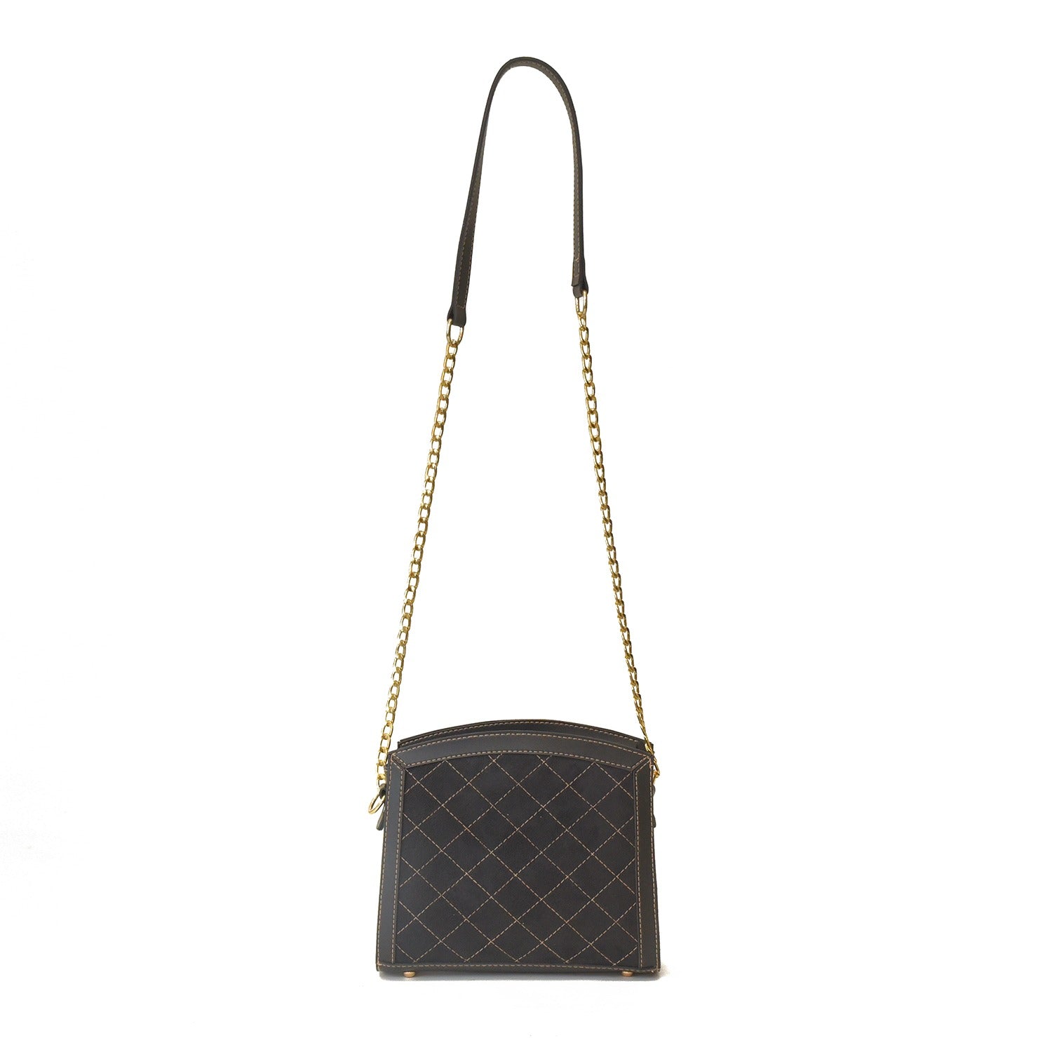 Sandy cross-body bag featuring a cross-stitch design, adorned with a luxurious golden chain. The intricate cross-stitch pattern adds a unique touch to the bag, while the golden chain enhances its elegance, making it a fashionable and versatile accessory for any occasion