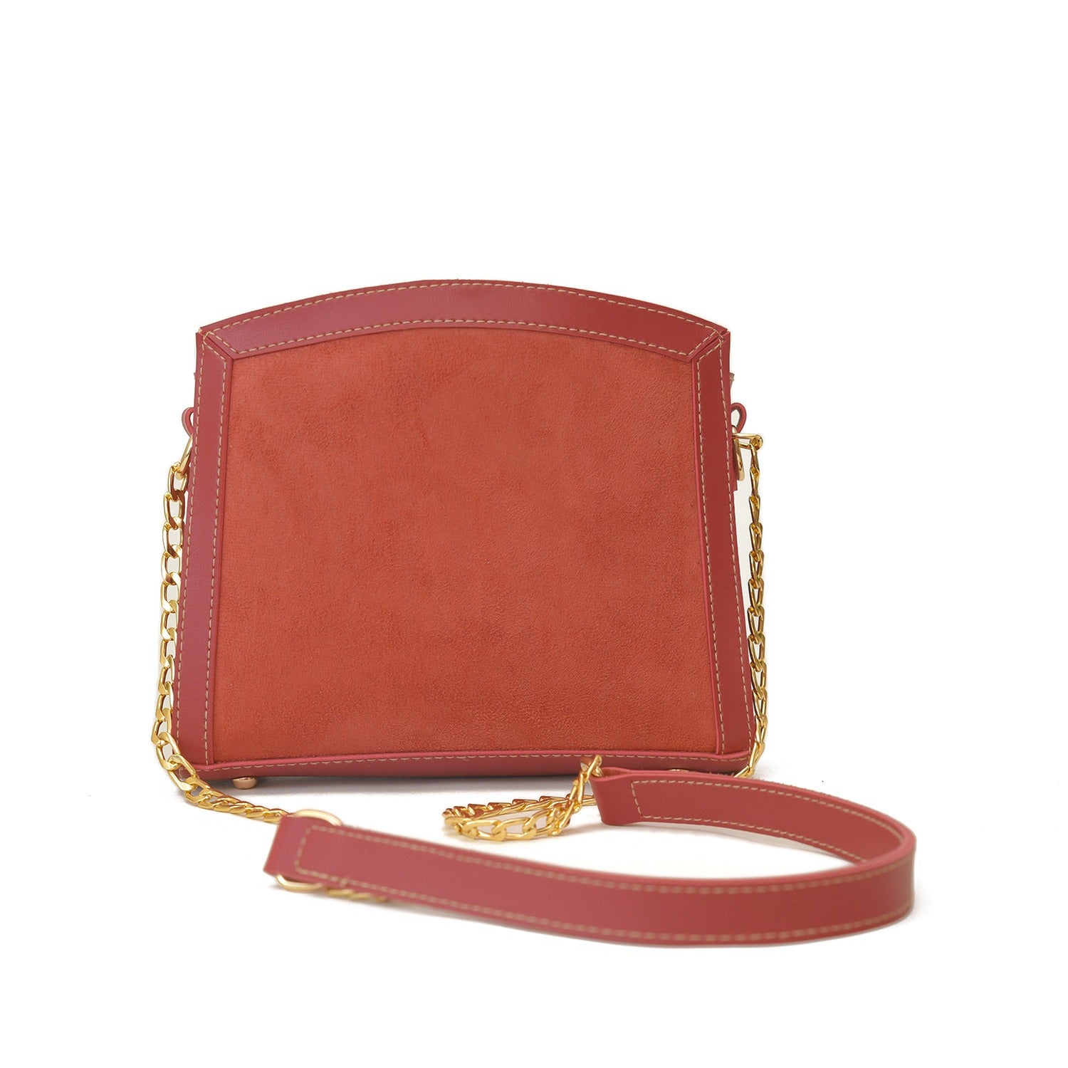 Sandy cross-body bag featuring a cross-stitch design, adorned with a luxurious golden chain. The intricate cross-stitch pattern adds a unique touch to the bag, while the golden chain enhances its elegance, making it a fashionable and versatile accessory for any occasion